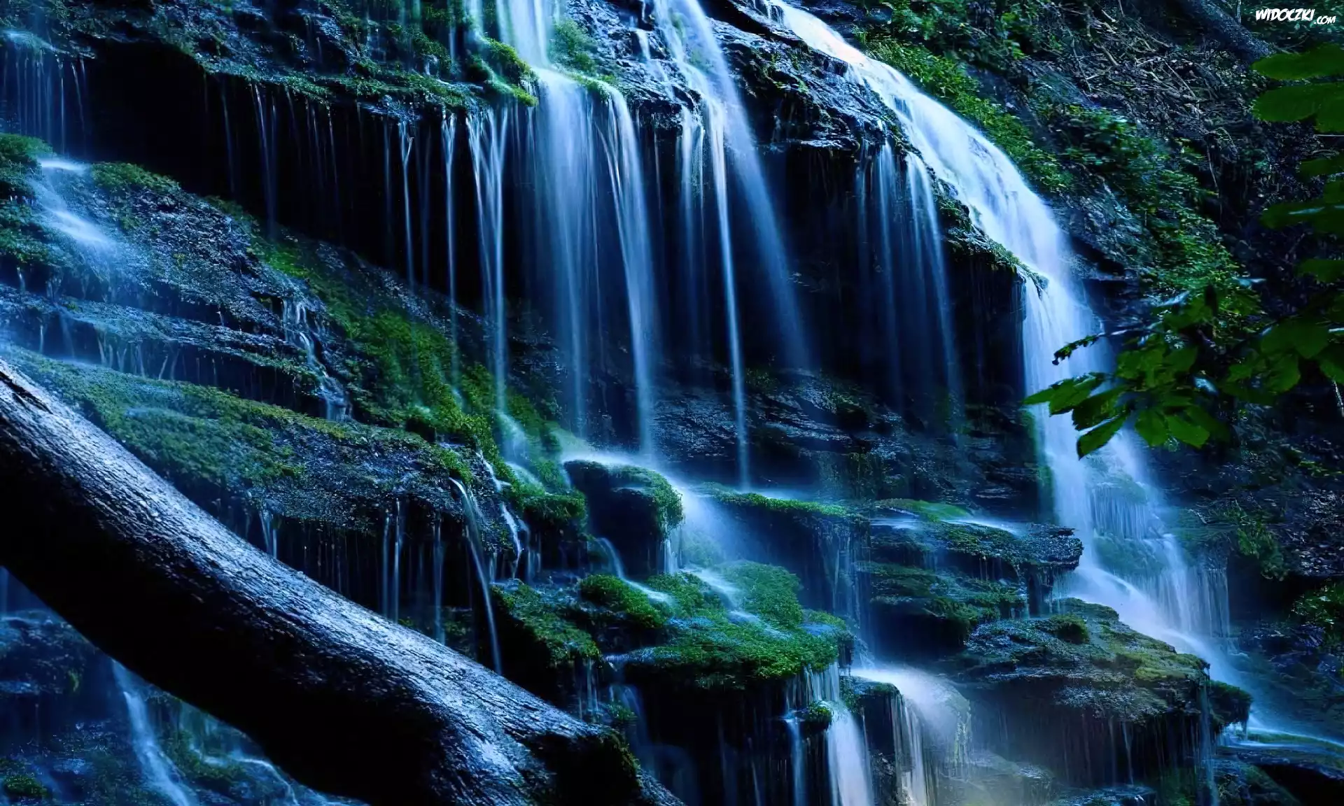 Wodospad, NocÄ…, Mchy, Konar, Drzewa