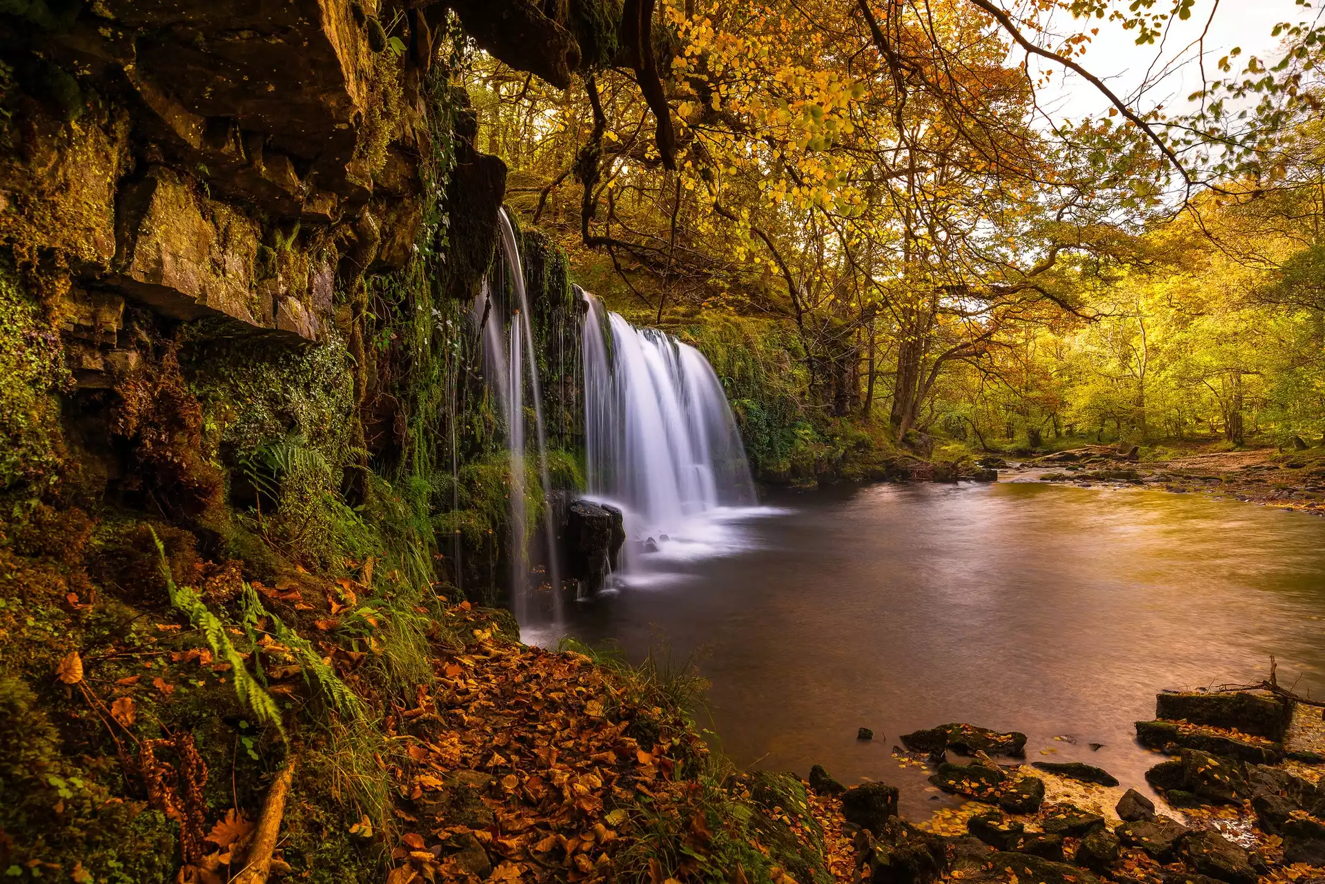 Wodospad, Drzewa, Krzewy, Jesień
