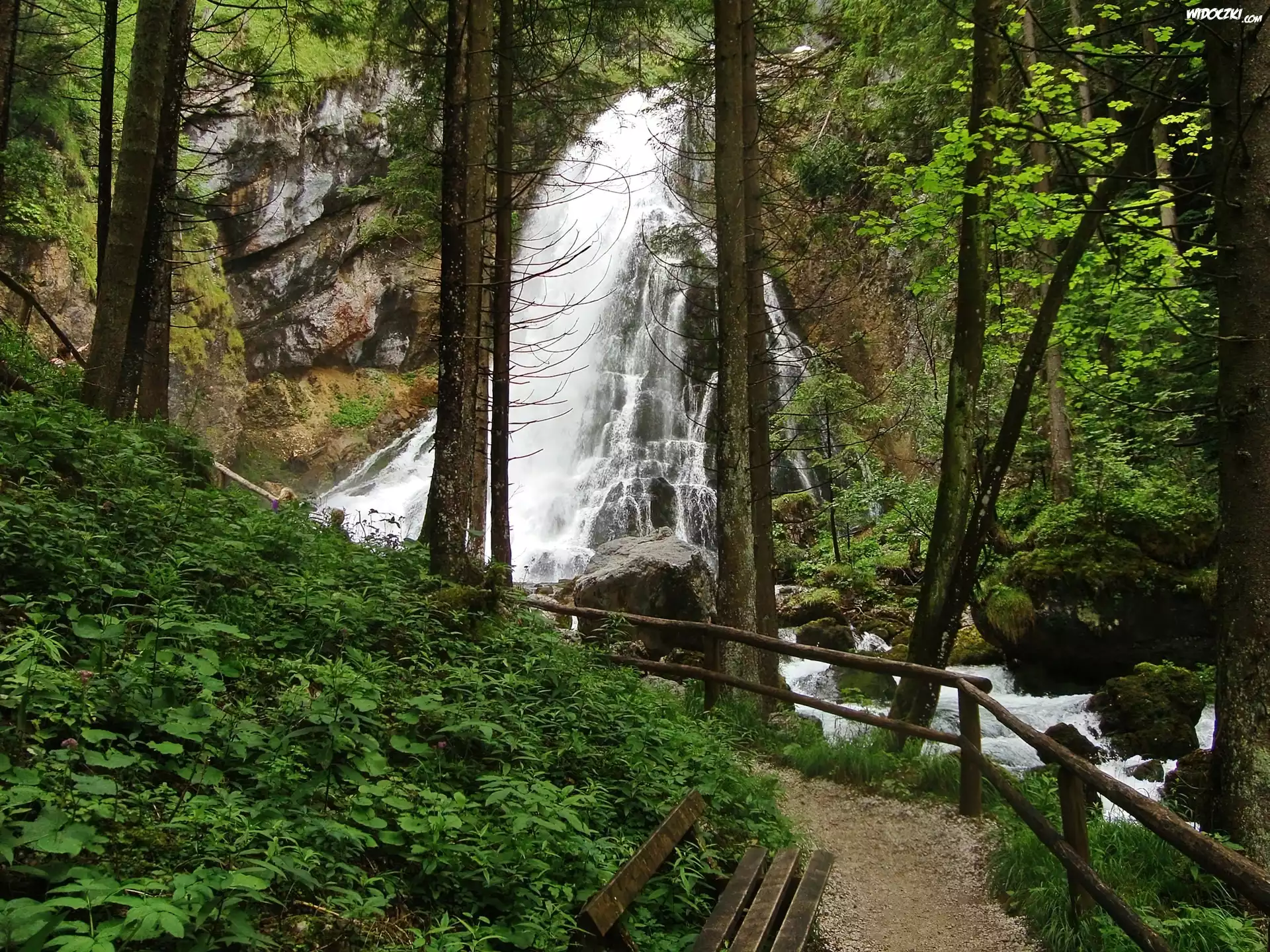 Las, Rzeka Wodospad Drzewa Noc, Drzewa, Księżyc Las, Przechodzące Światło wonski Wodospad Wodospad Statek, Wycieczkowy, Wodospad, Niagara Góry, Lasy, Rzeka Wodospad zimą Las, Kwiatki Las, Drzewa, Mgła Jesień, Las, Rzeka Lato, Brzozy, Zielone, Krzaki Wodospad