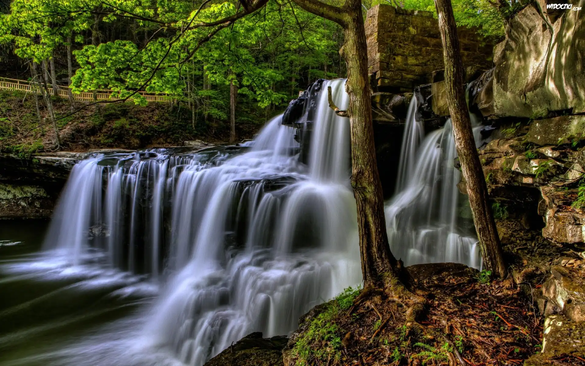 Zdj臋cia, Las, Wodospad, Drzewa