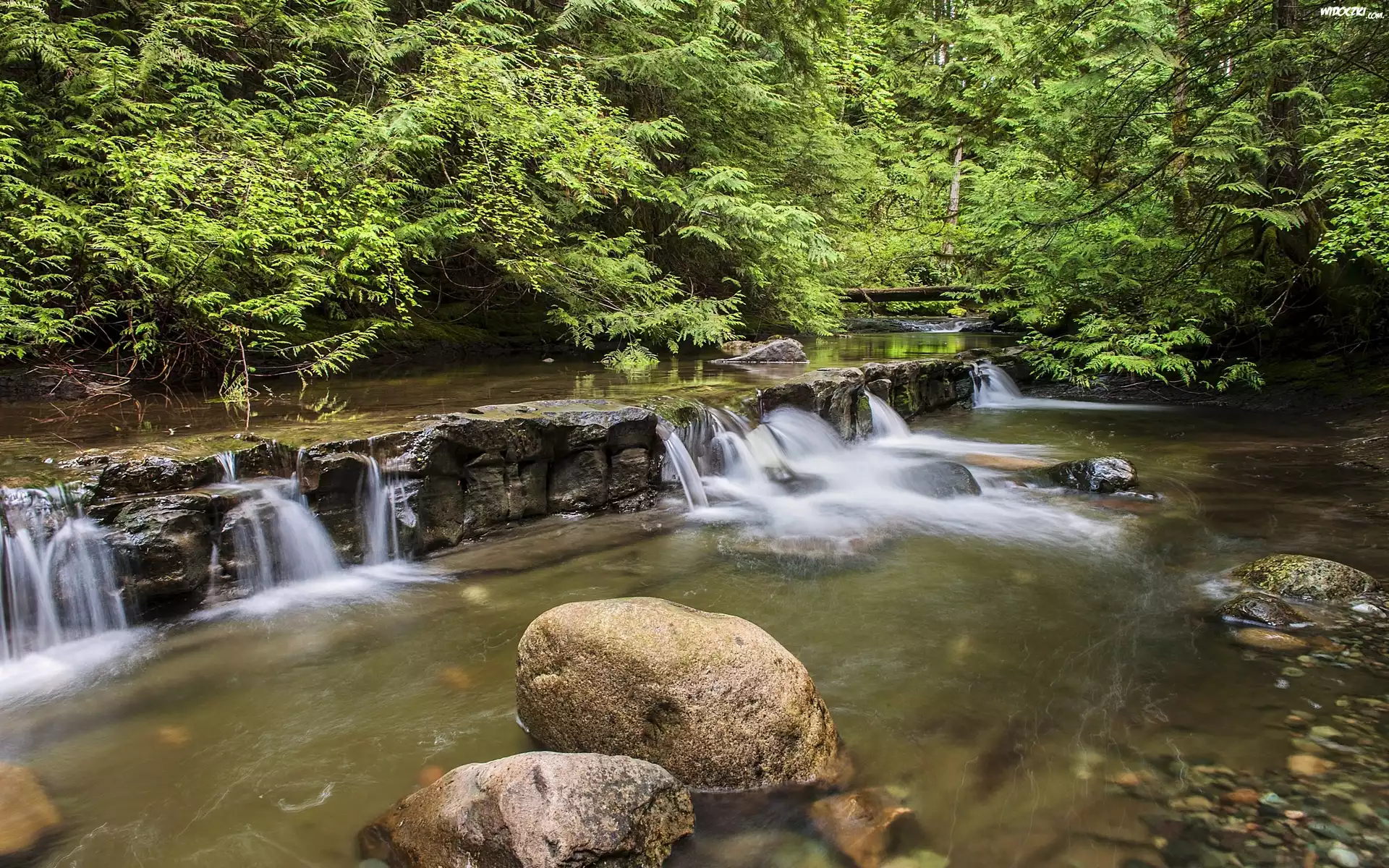 Zdjęcia, Las, Wodospad, Kamienie