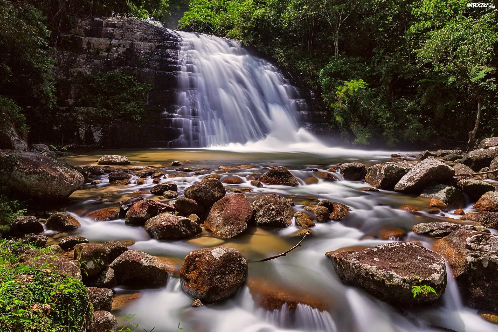 Zdj臋cia, Las, Wodospad, Kamienie