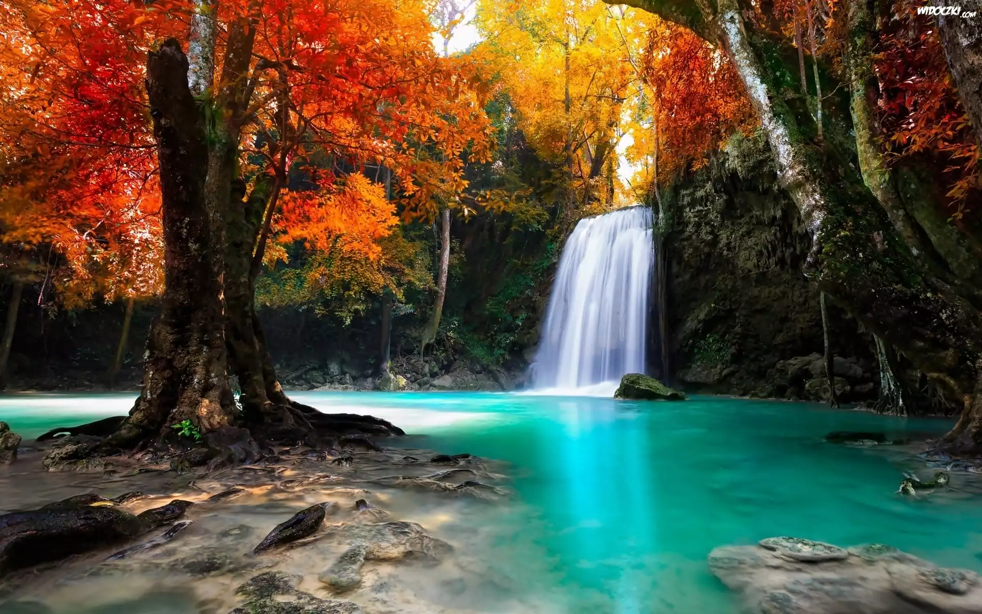 Zdjęcia, Wodospad, Rzeka, Las, Jesień