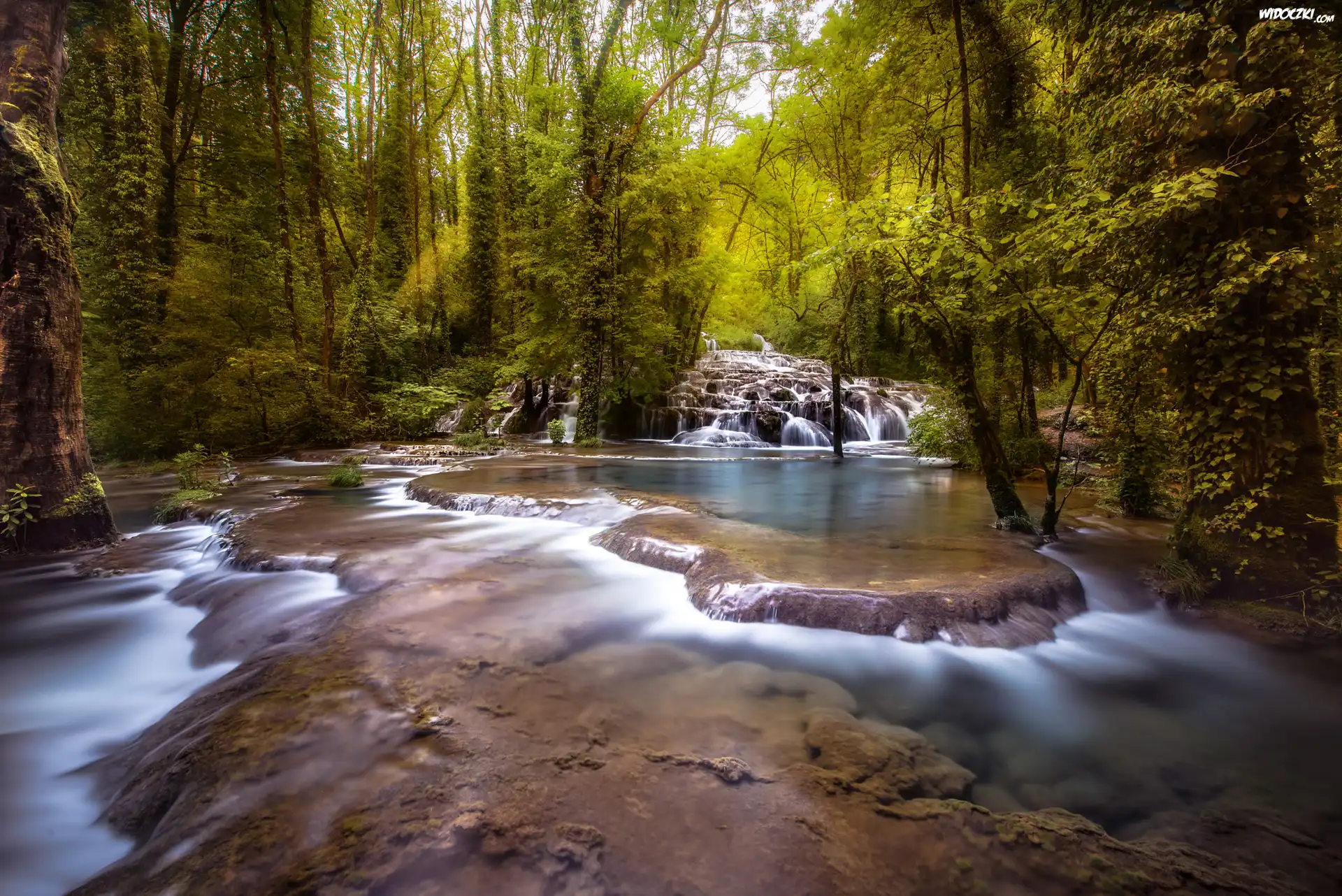 Zdj臋cia, Wodospad, Kaskada, Rzeka, Las, Drzewa