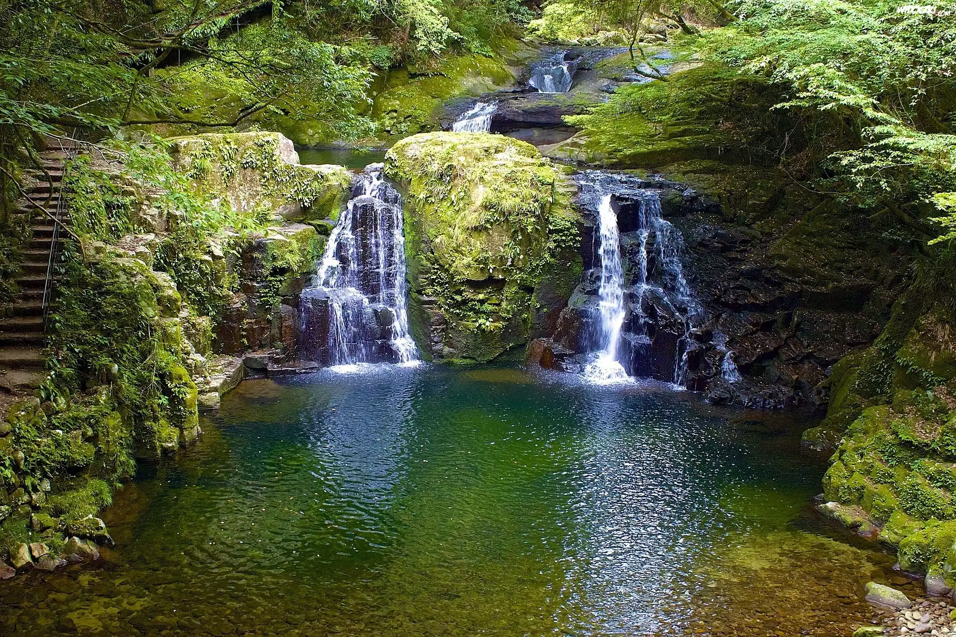Zdjęcia, Las, Wodospad, Schody