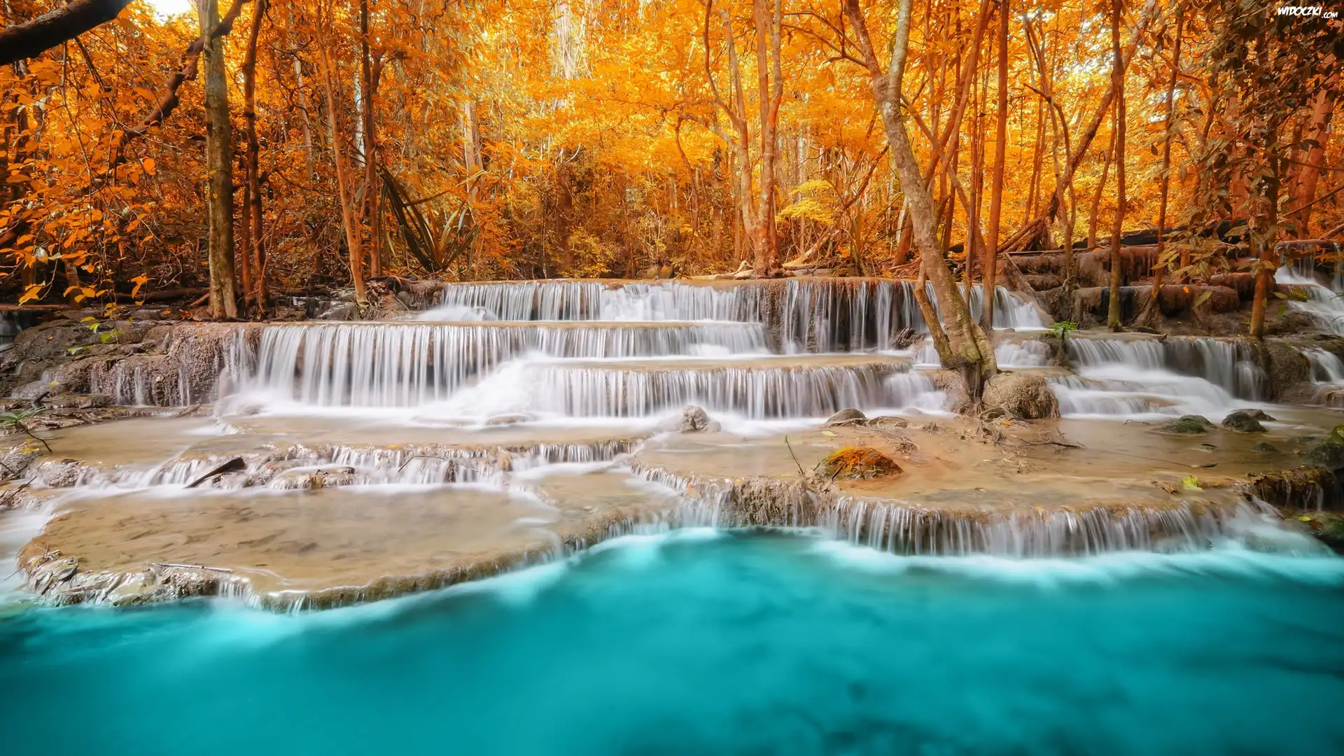 Zdjęcia, Las, Wodospad, Skały