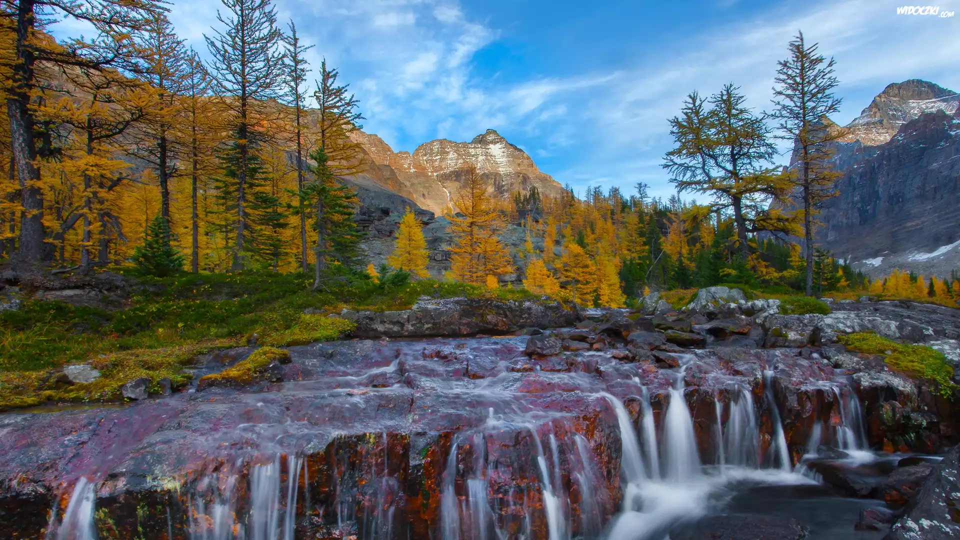 Zdjęcia, Wodospad, Rzeka, Skały, Lasy, Góry