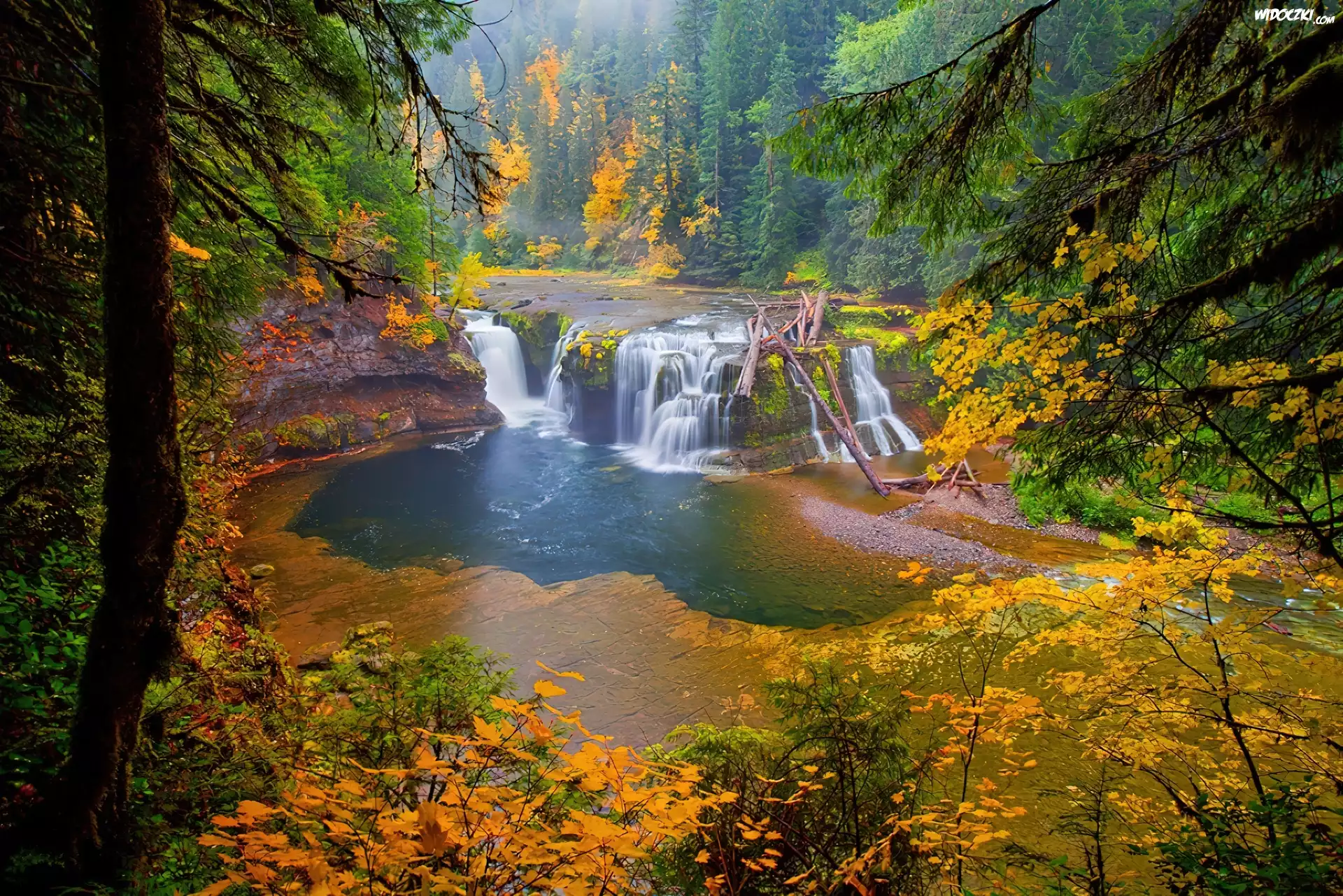 Zdjęcia, Wodospad, W, Lesie, Jesień