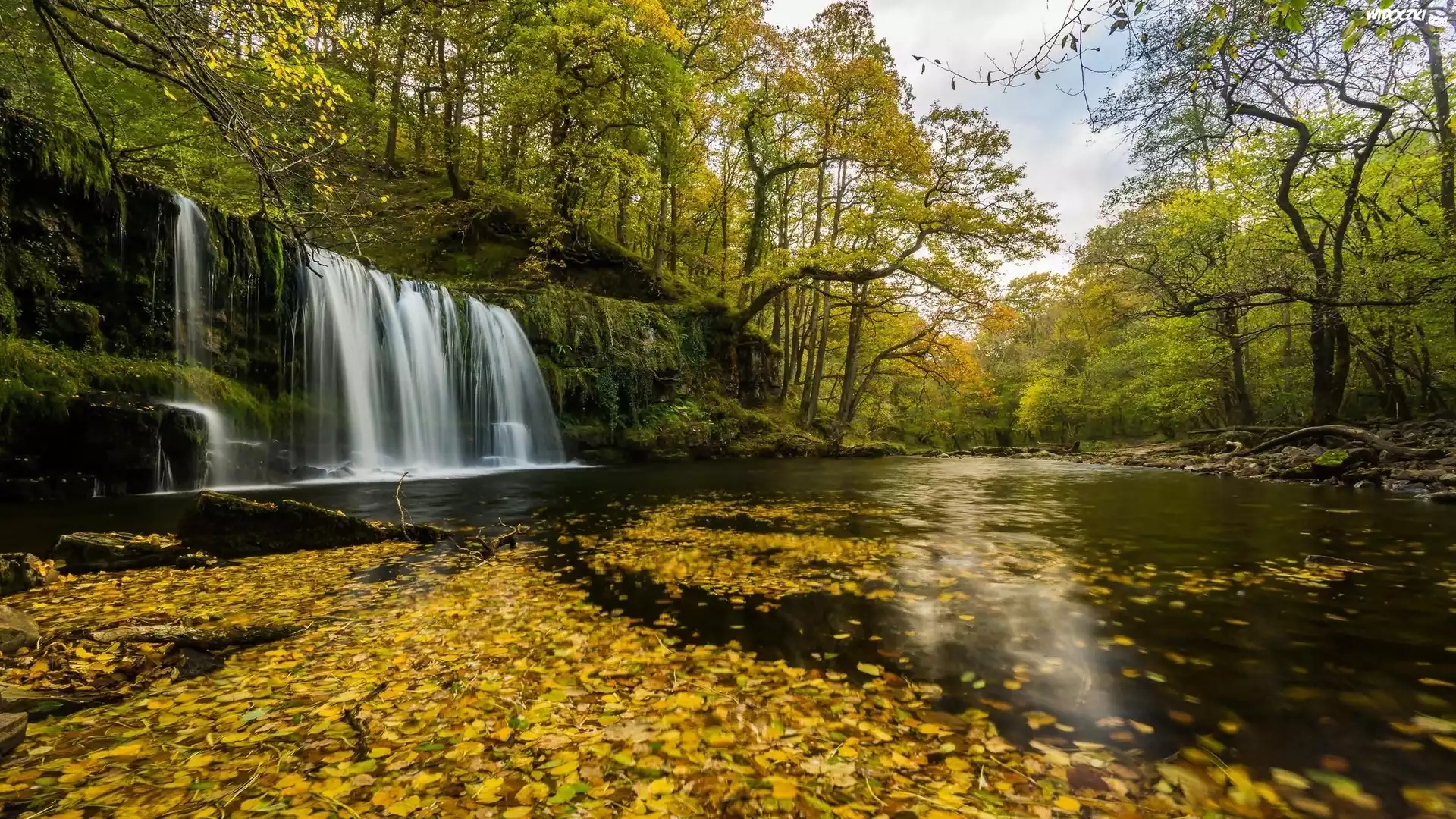 Zdjęcia, Wodospad, Las, Rzeka, Liście, Jesień