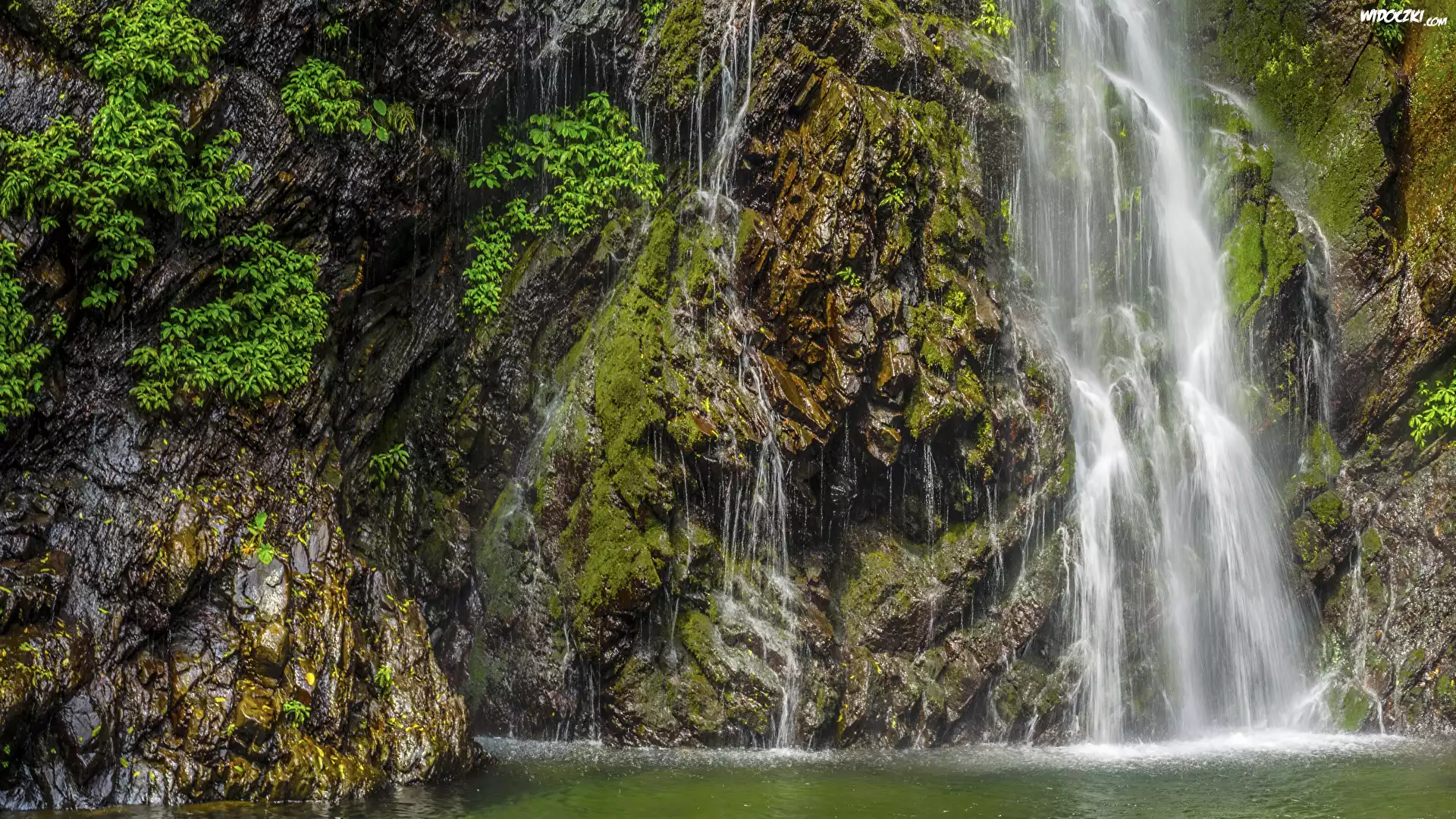 Zdjęcia, Wodospad, Skała, Mech, Roślinność
