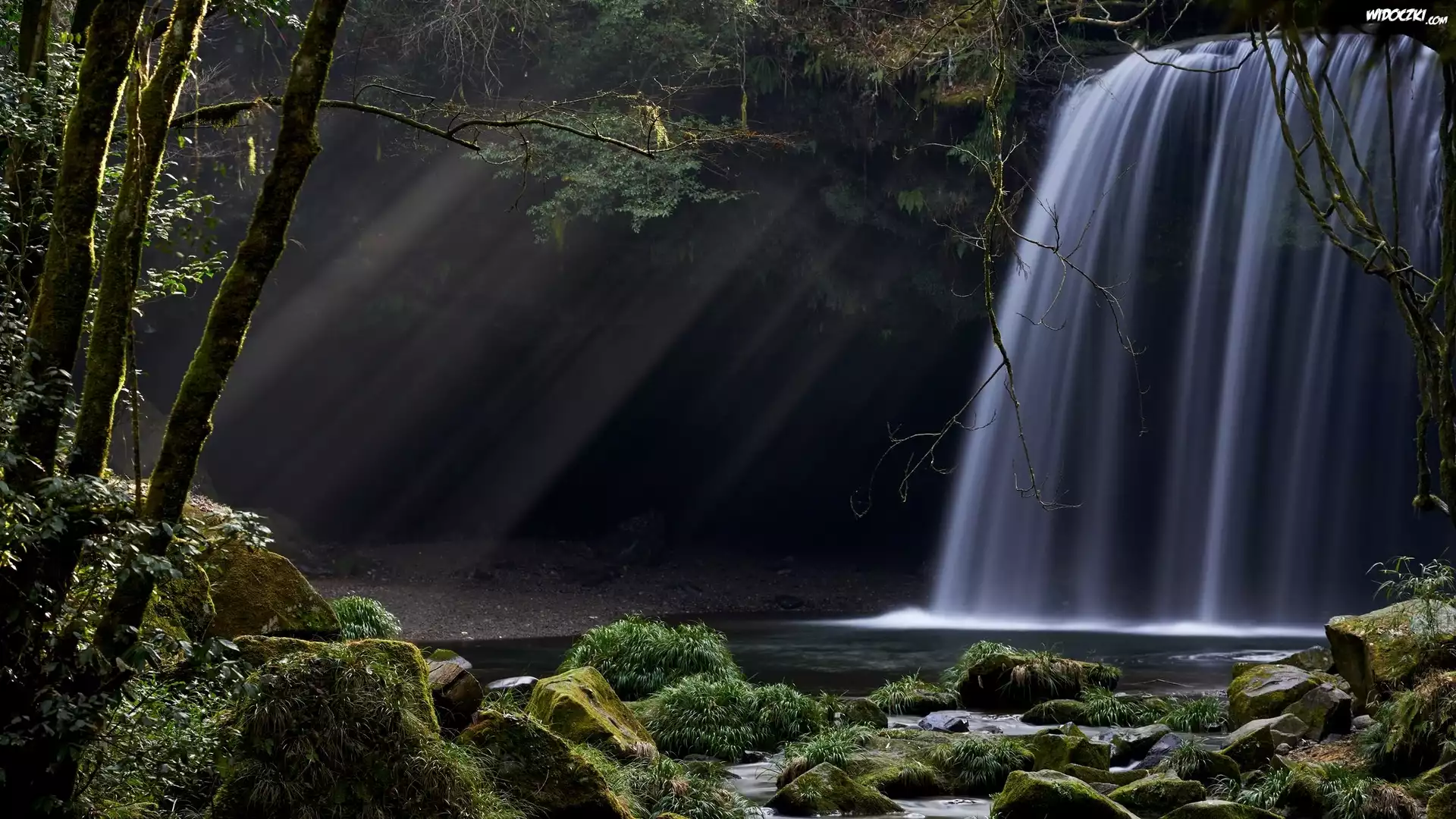 Wodospad, Las, Omszałe, Kamienie
