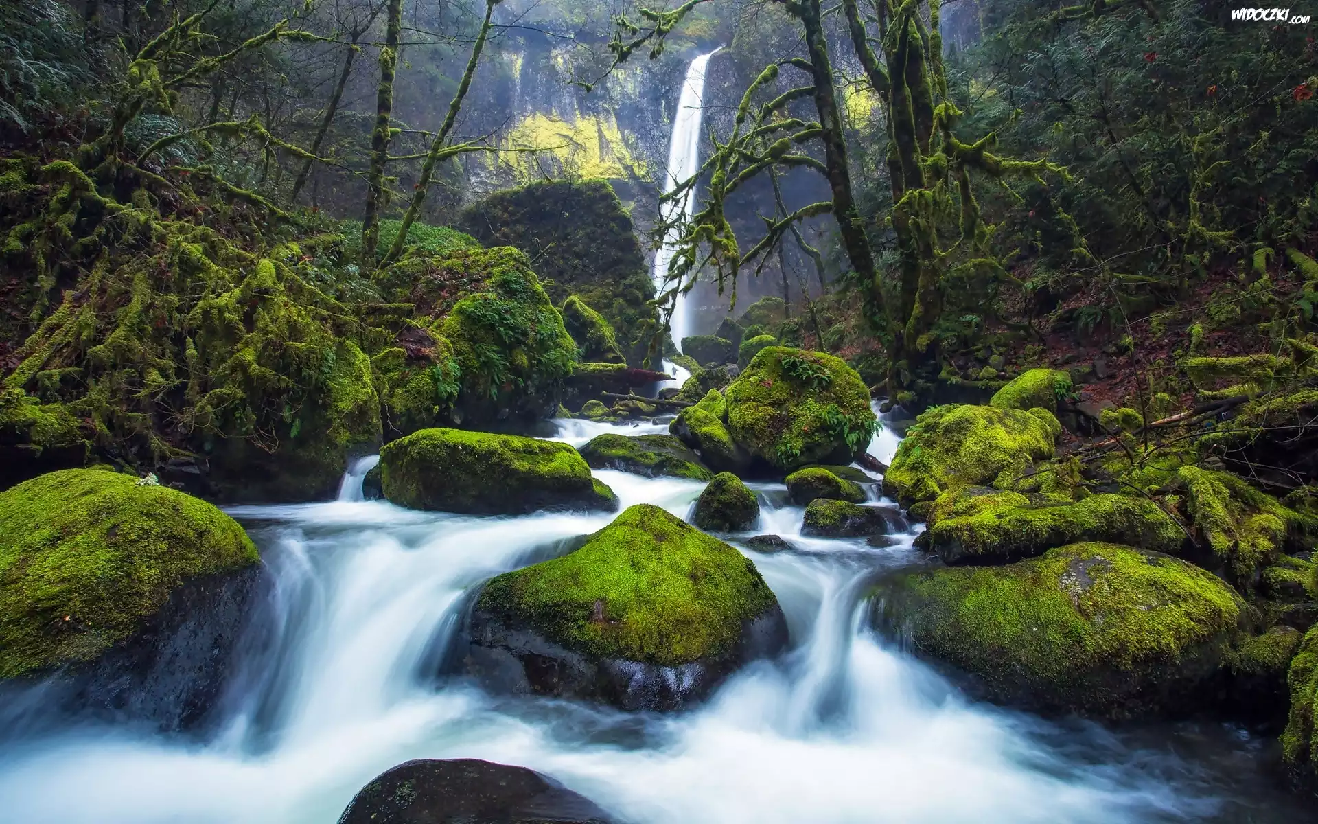 Zdjęcia, Wodospad, Las, Potok, Omszałe, Kamienie
