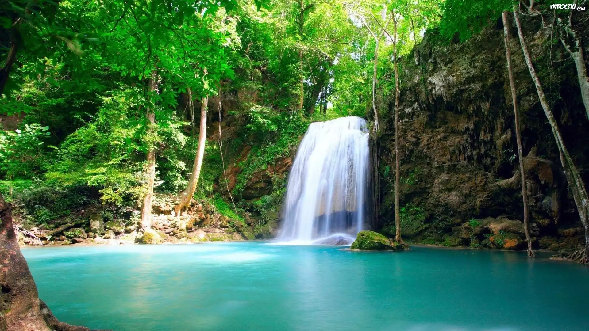 Zdj臋cia, Wodospad, Jeziorko, Drzewa, Plitvice, Chorwacja
