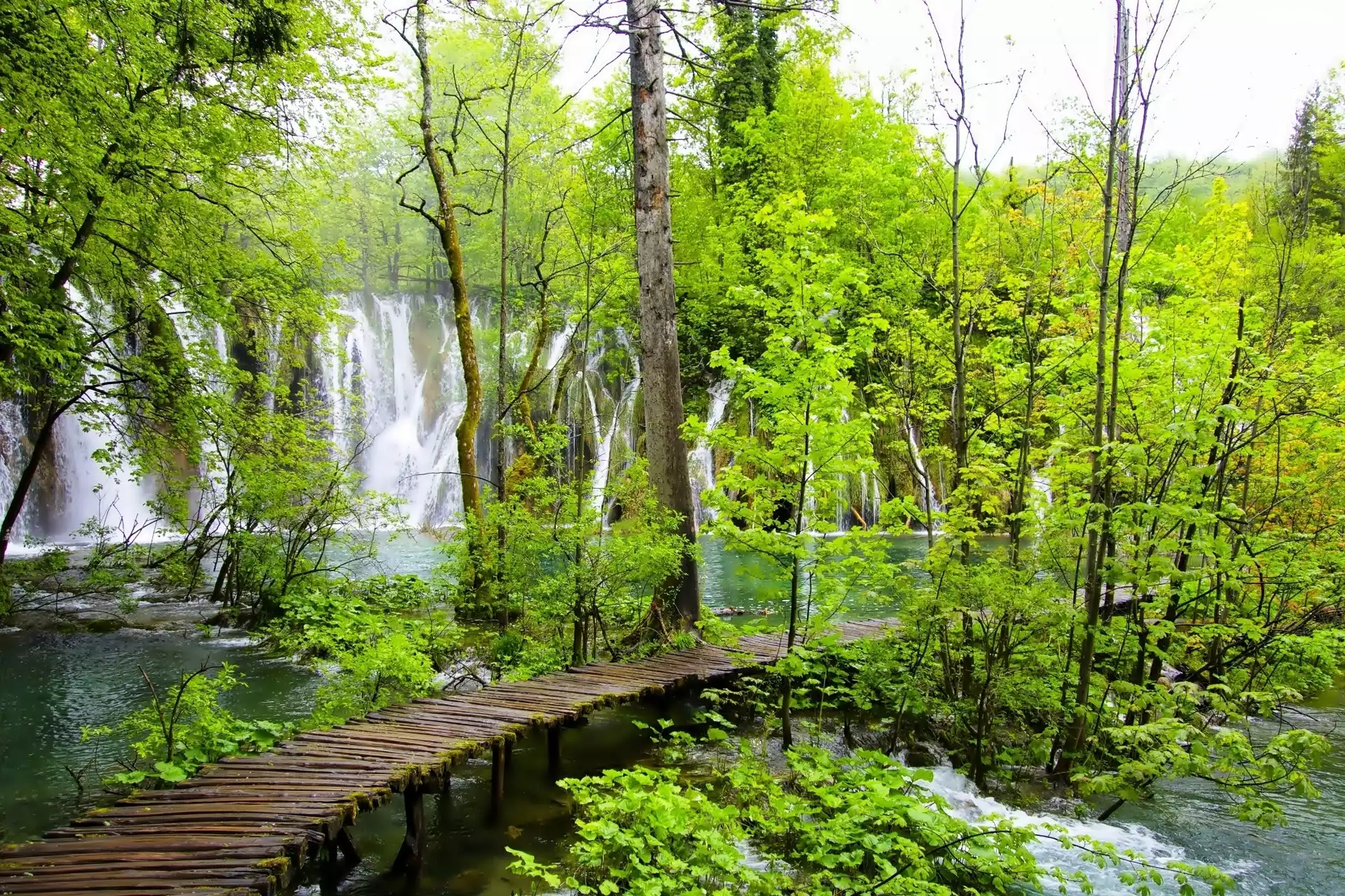 Zdjęcia, Wodospad, Las, Pomost, Plitvice, Chorwacja