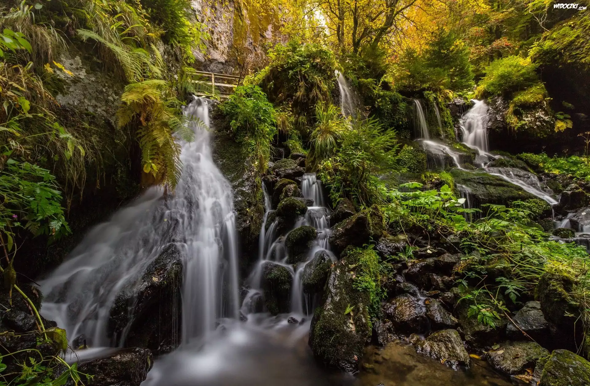 Zdjęcia, Wodospad, Las, Kamienie, Roślinność, Drzewa