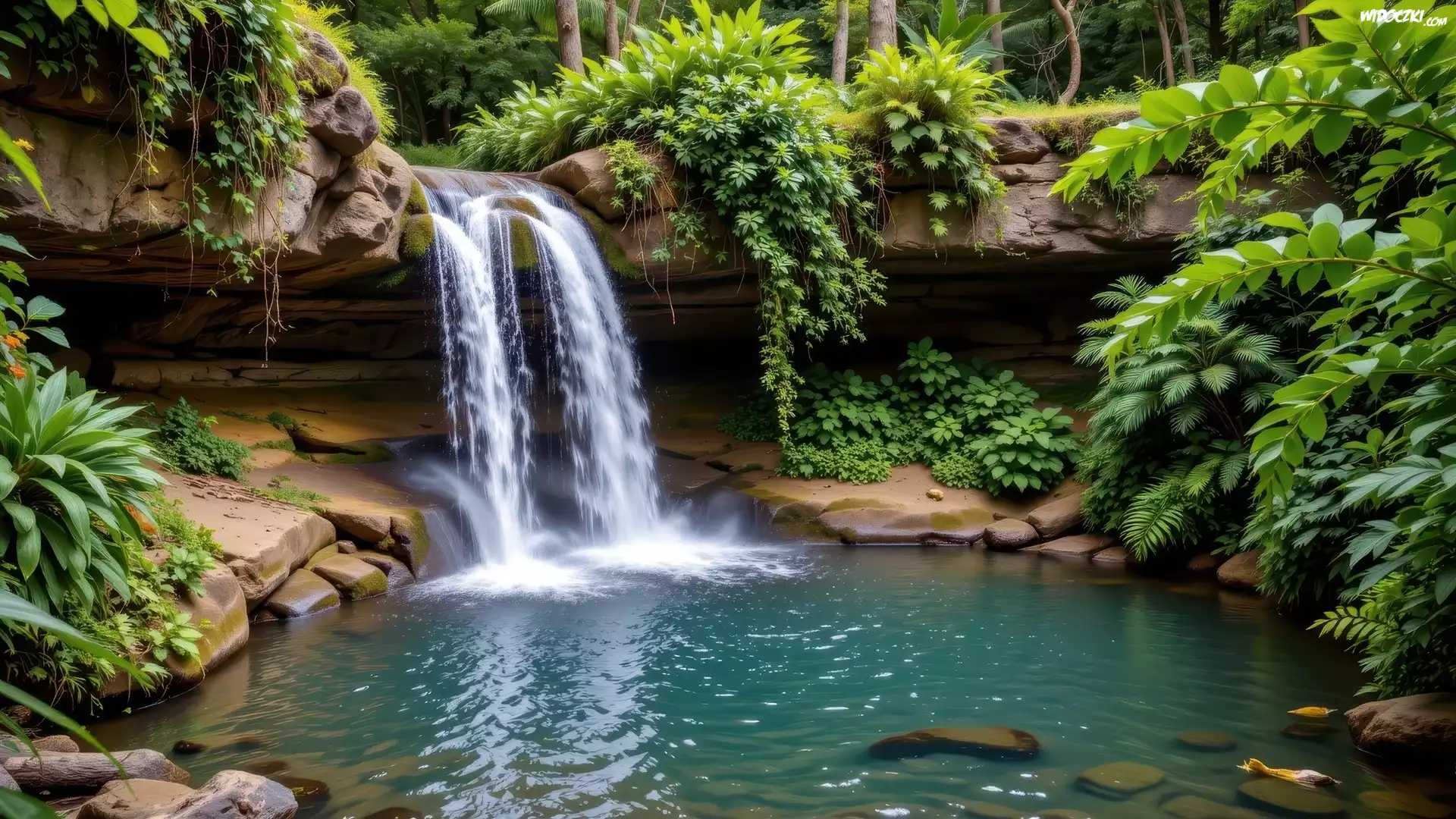 Zdjęcia, Skały, Wodospad, Rośliny, Rzeka, AI