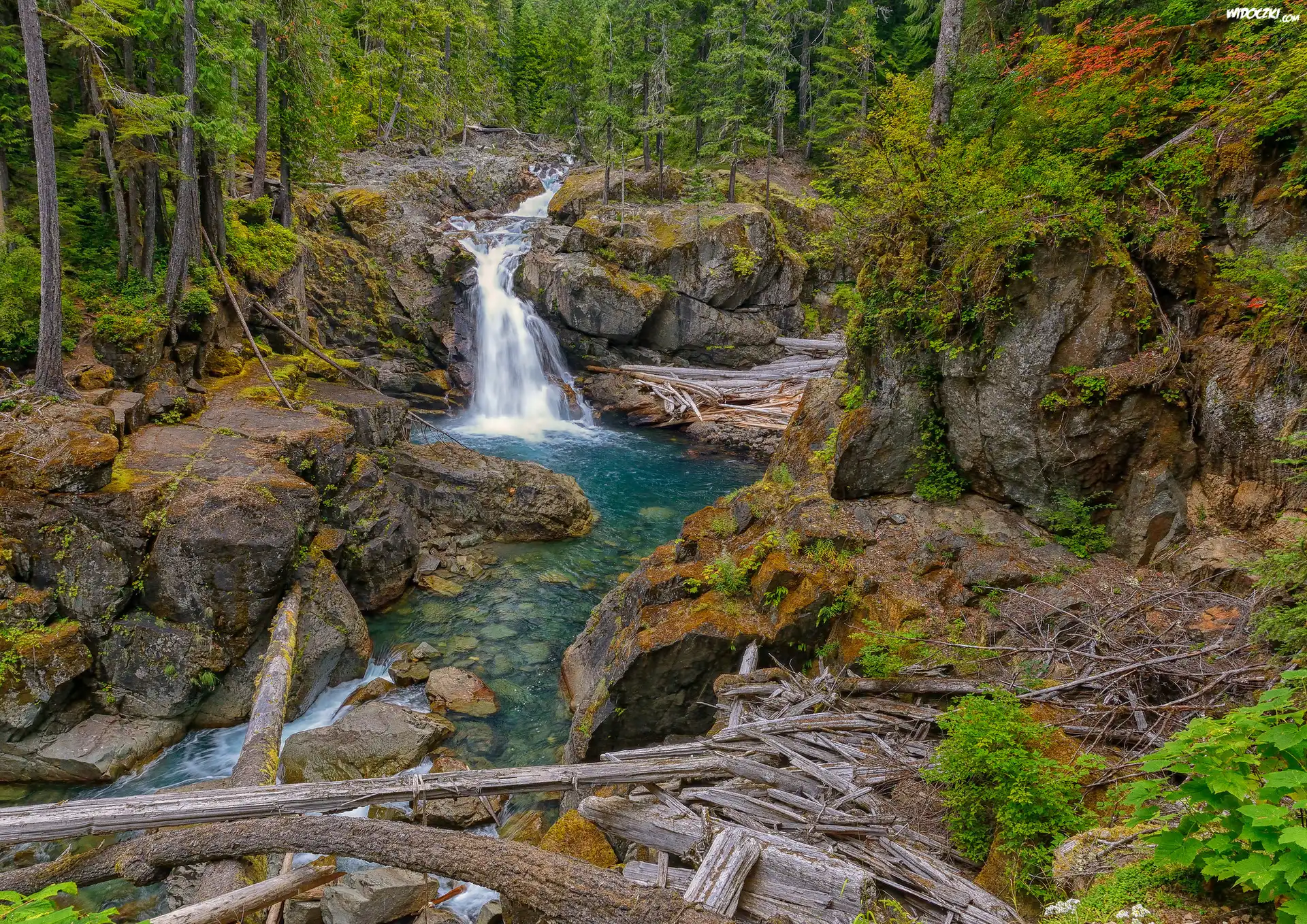 Wodospad, Kamienie, Rzeczka, Roślinność