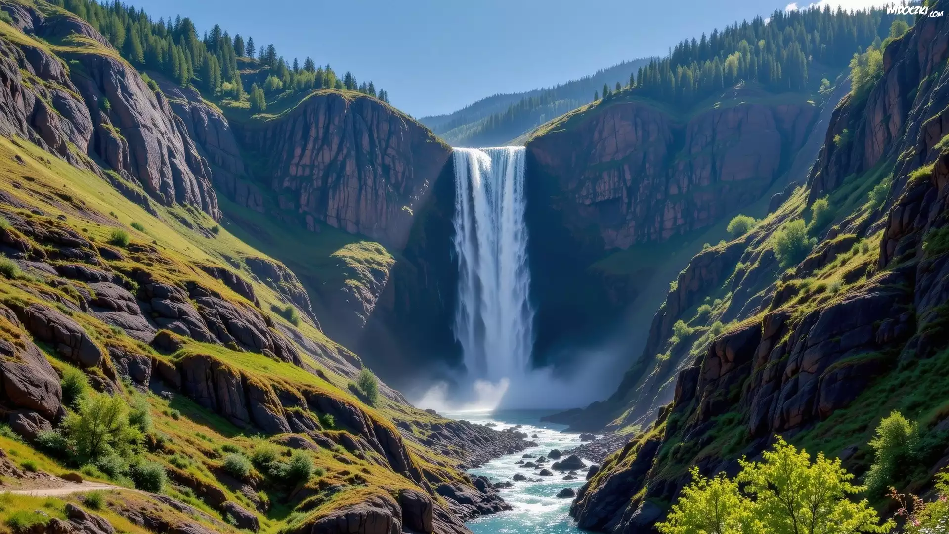 Zdjęcia, Skały, Wodospad, Rzeka, Grafika AI