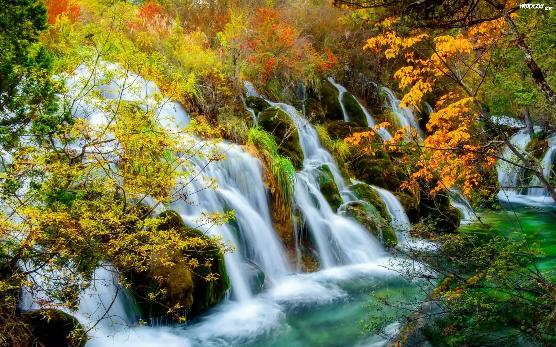 Zdjęcia, Wodospad, Kaskada, Las, Góry, Rzeka, Jesień