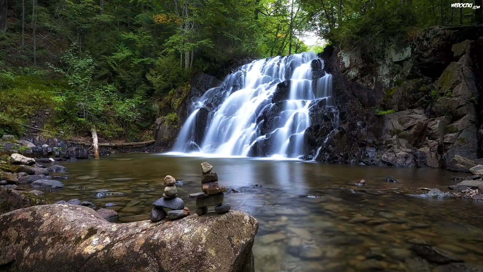 Zdjęcia, Wodospad, Skały, Rzeka, Drzewa