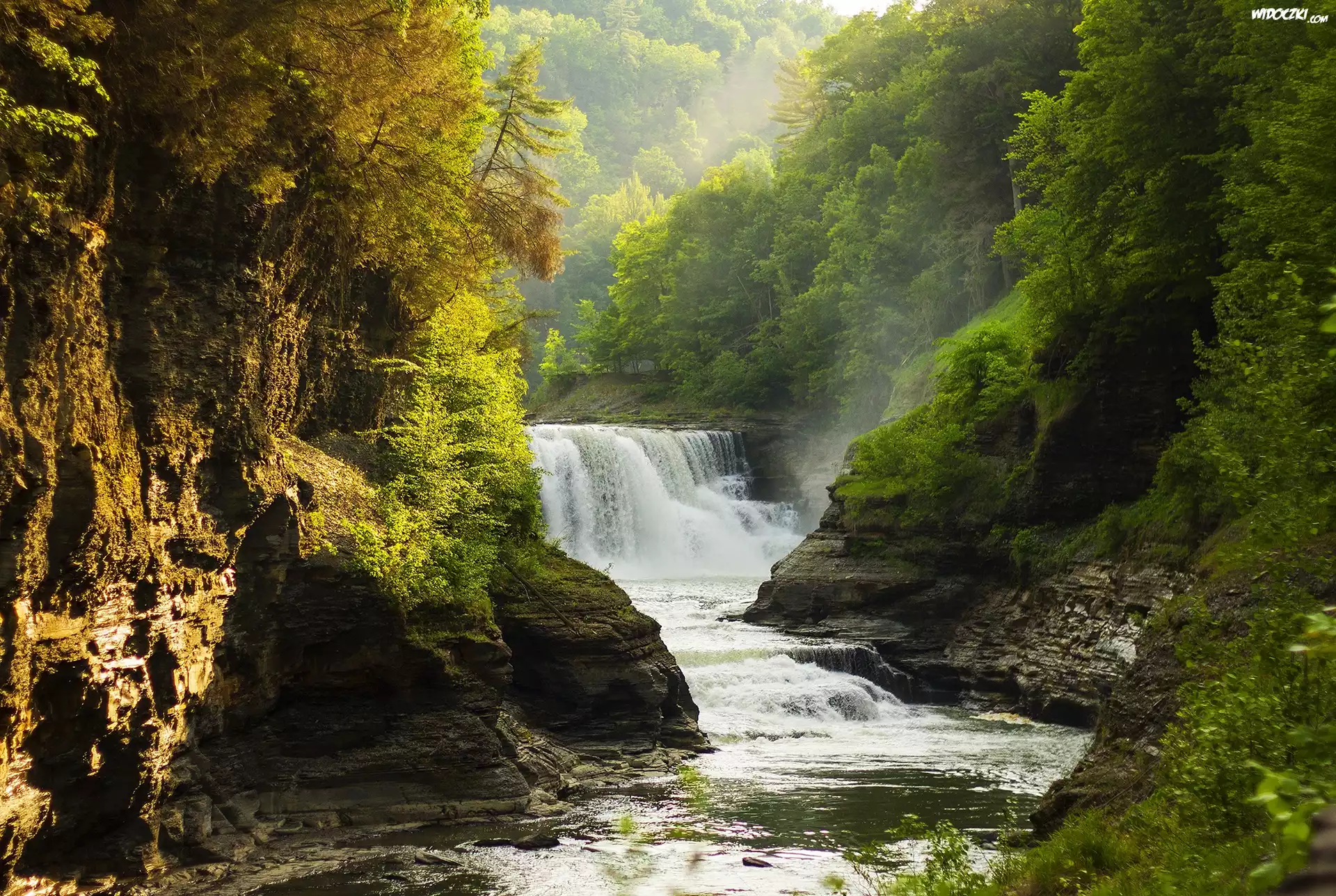 Zdjęcia, Wodospad, Skały, Rzeka, Roślinność