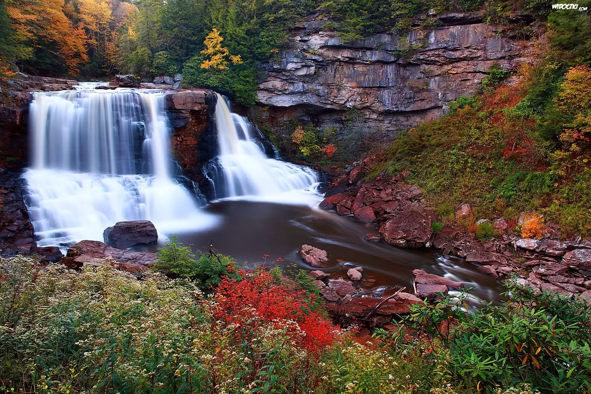 Jesień, Las, Rzeka Wodospad Zimowy, Widok, Skały, Śnieg Wodospad Rzeka, Niers, Niemcy Zachód Słońca, Wybrzeże, Skały Wysoki Wodospad Wodospady wysoki Wodospad Skały, Fala, Rozbryzg Góra, Mount Rushmore, Twarze, Prezydentów, USA Wodospad Drzewa Góry, Rzeka, Wodospad Wyspa, Zachód Słońca, Skały, Morze