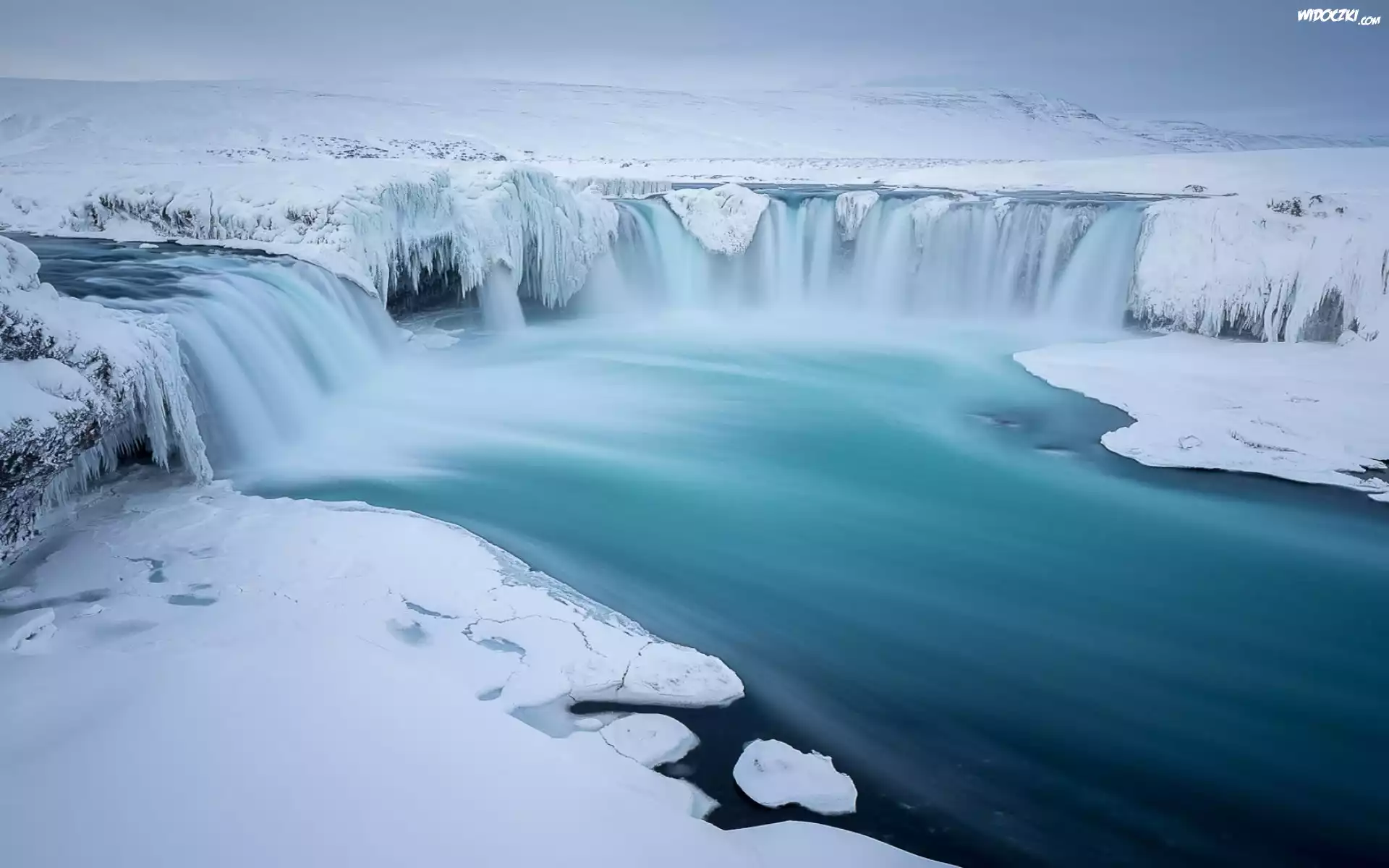 Zdjęcia, Rzeka, Wodospad Godafoss, Islandia, Zima