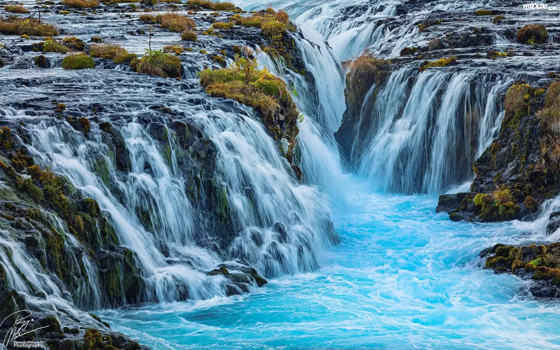 Zdjęcia, Wodospad Bruarfoss, Skały, Islandia
