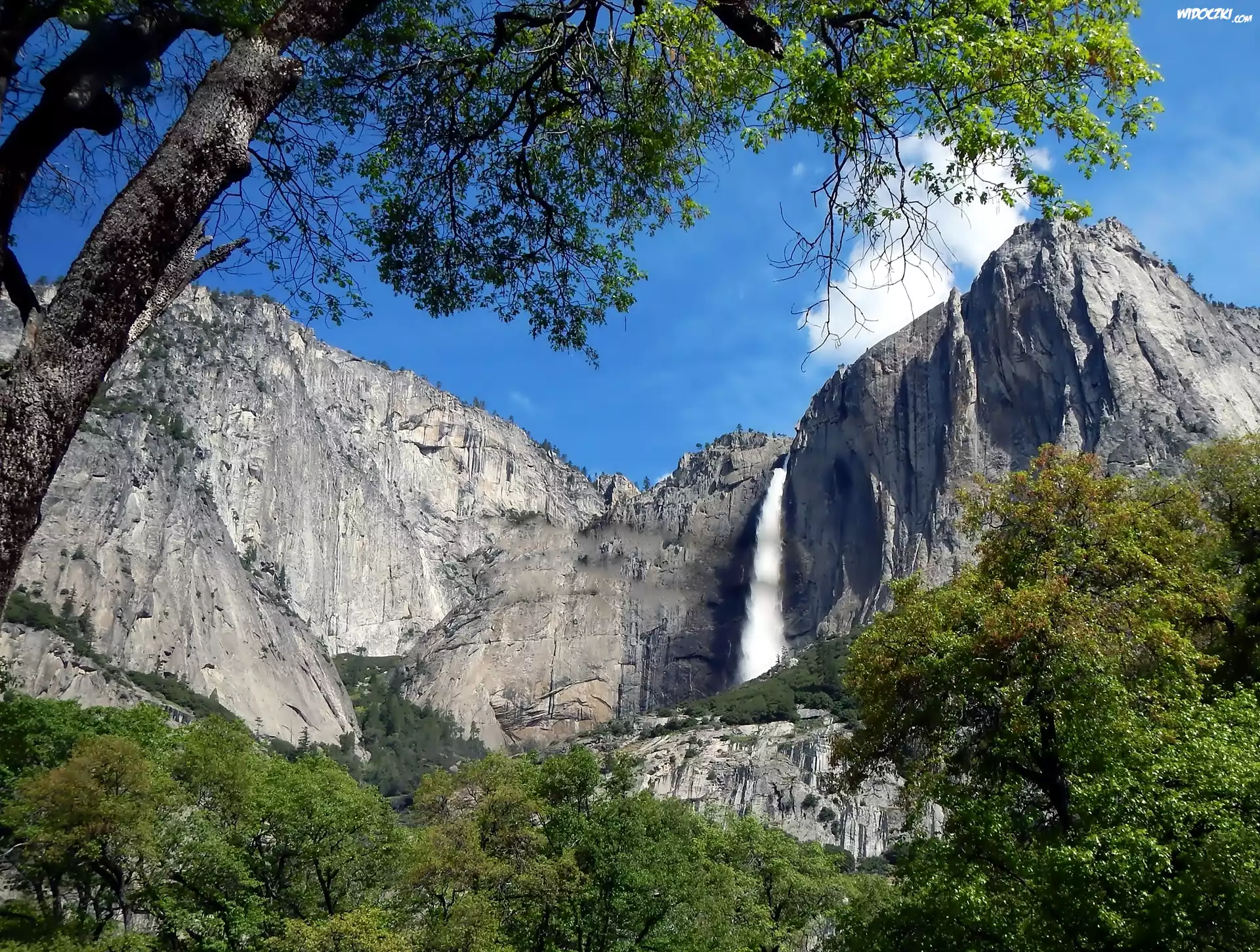 Zdjęcia, Skały, Wodospad, Drzewa