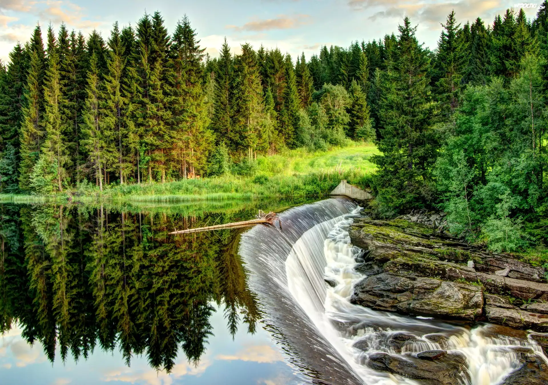 Wodospad, Las, Skały, Rzeka