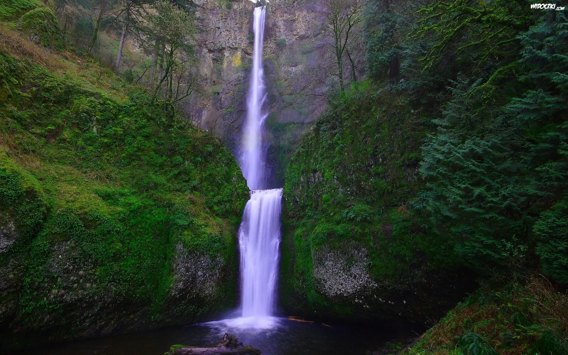 Zdjęcia, Wodospad, Omszałe, Skały, Roślinność