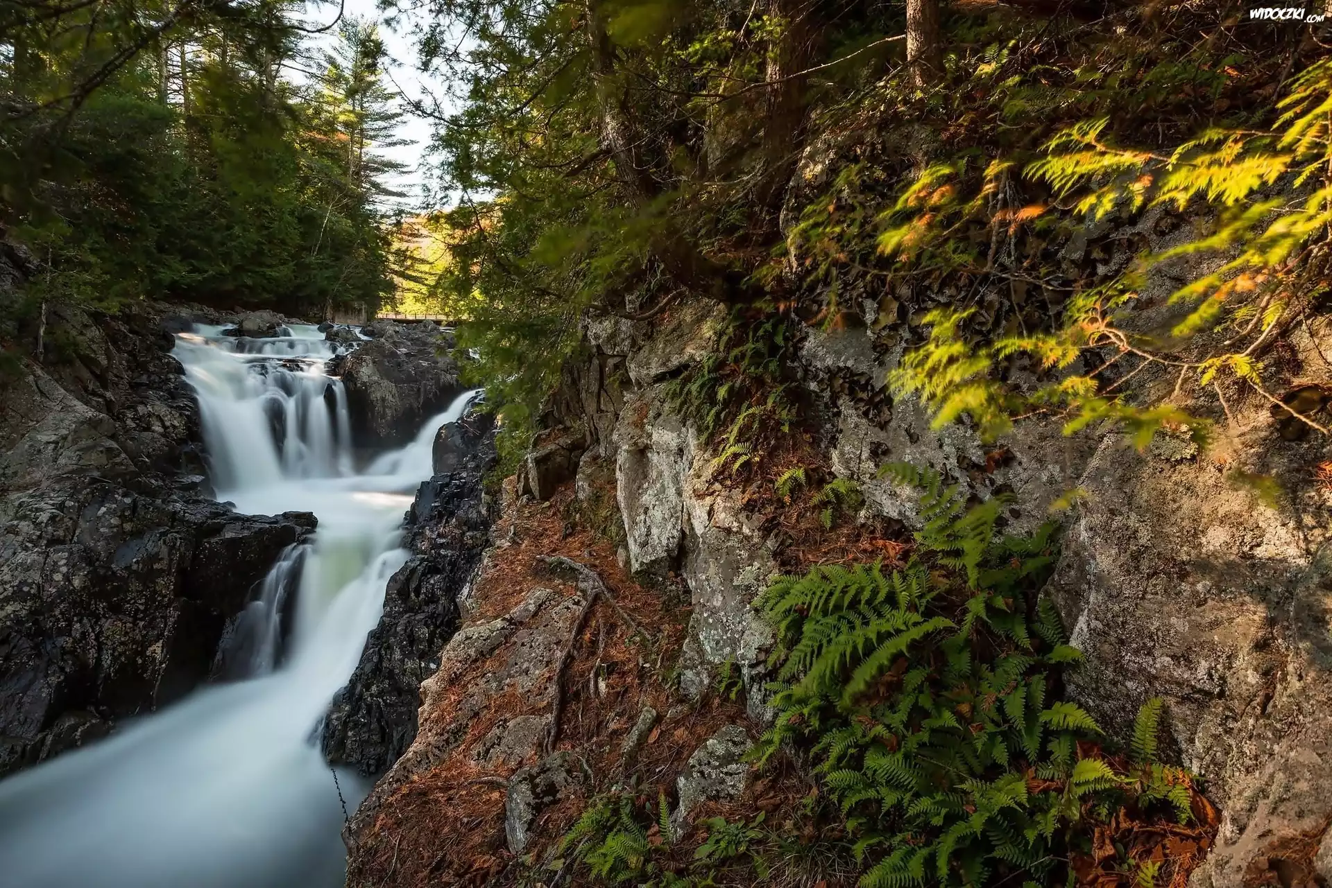 Zdjęcia, Wodospad, Las, Rzeka, Skały, Paprocie