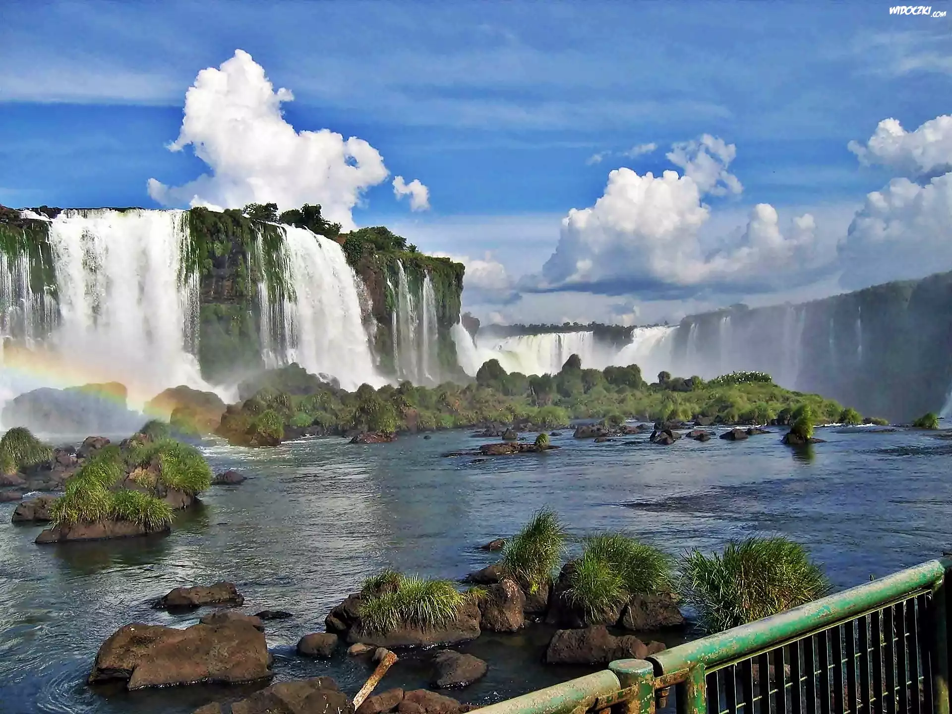 Zdjęcia, Skały, Wodospad, Rzeka, Kamienie, Obłoki, Tęcza, Trawy