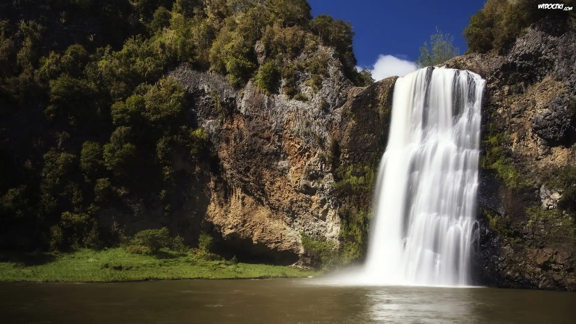 Zdjęcia, Wodospad, Wysokość, Skały, Rośliny
