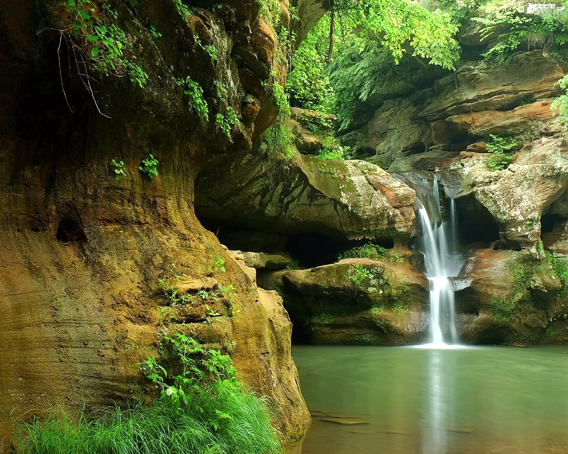 Zdjęcia, Skały, Wodospad, Zieleń