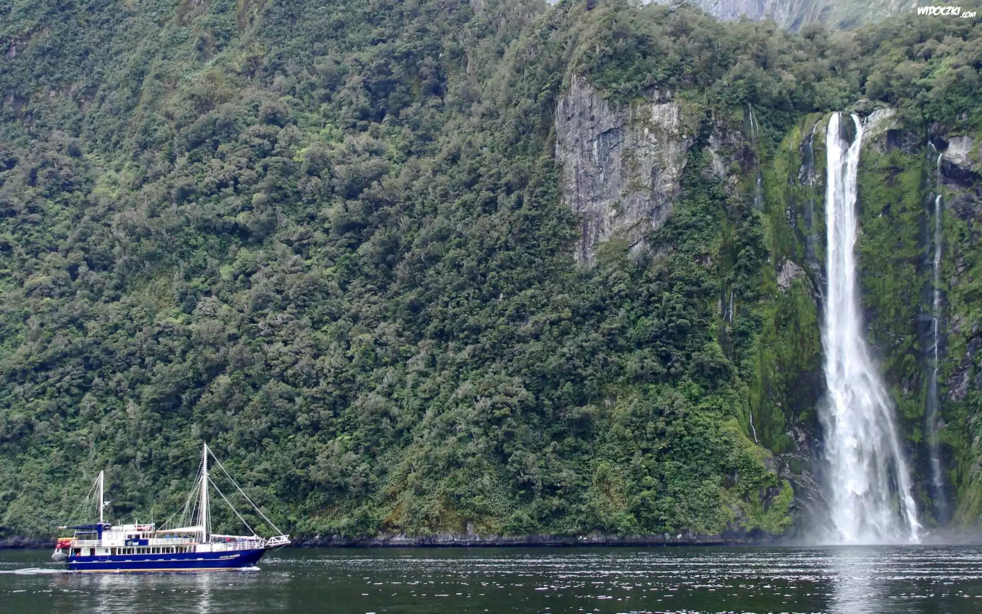 Zdjęcia, Wodospad, Jezioro, Statek, Wycieczkowy