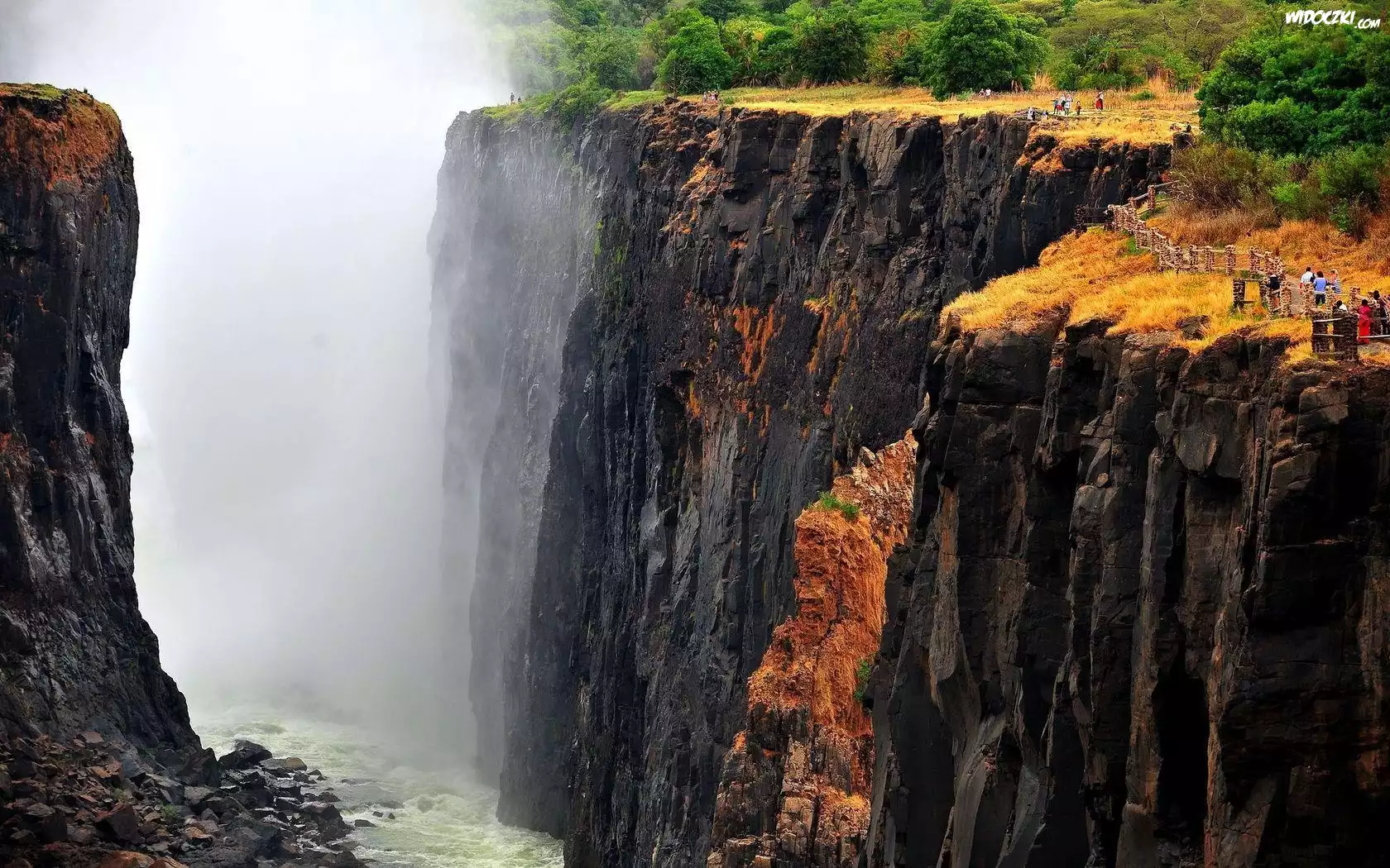 Zdjęcia, Wodospad, Wiktorii, Skały, Turyści, Zambia
