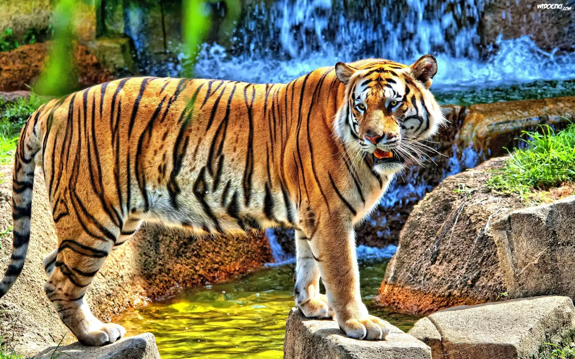 Zdjęcia, Tygrys, Wodospad, Skały