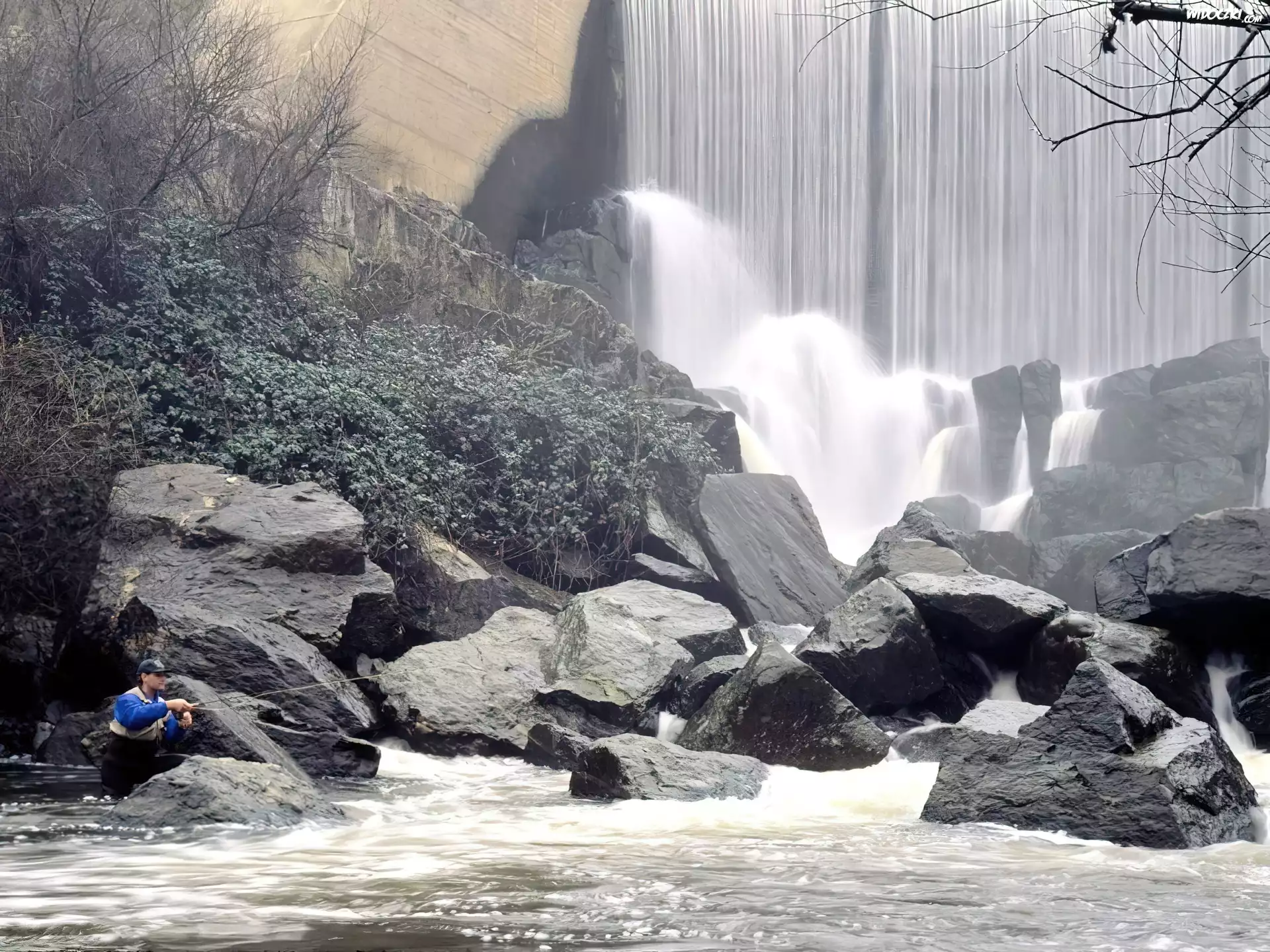 Zdjęcia, Wędkowanie, Wodospad, Skała