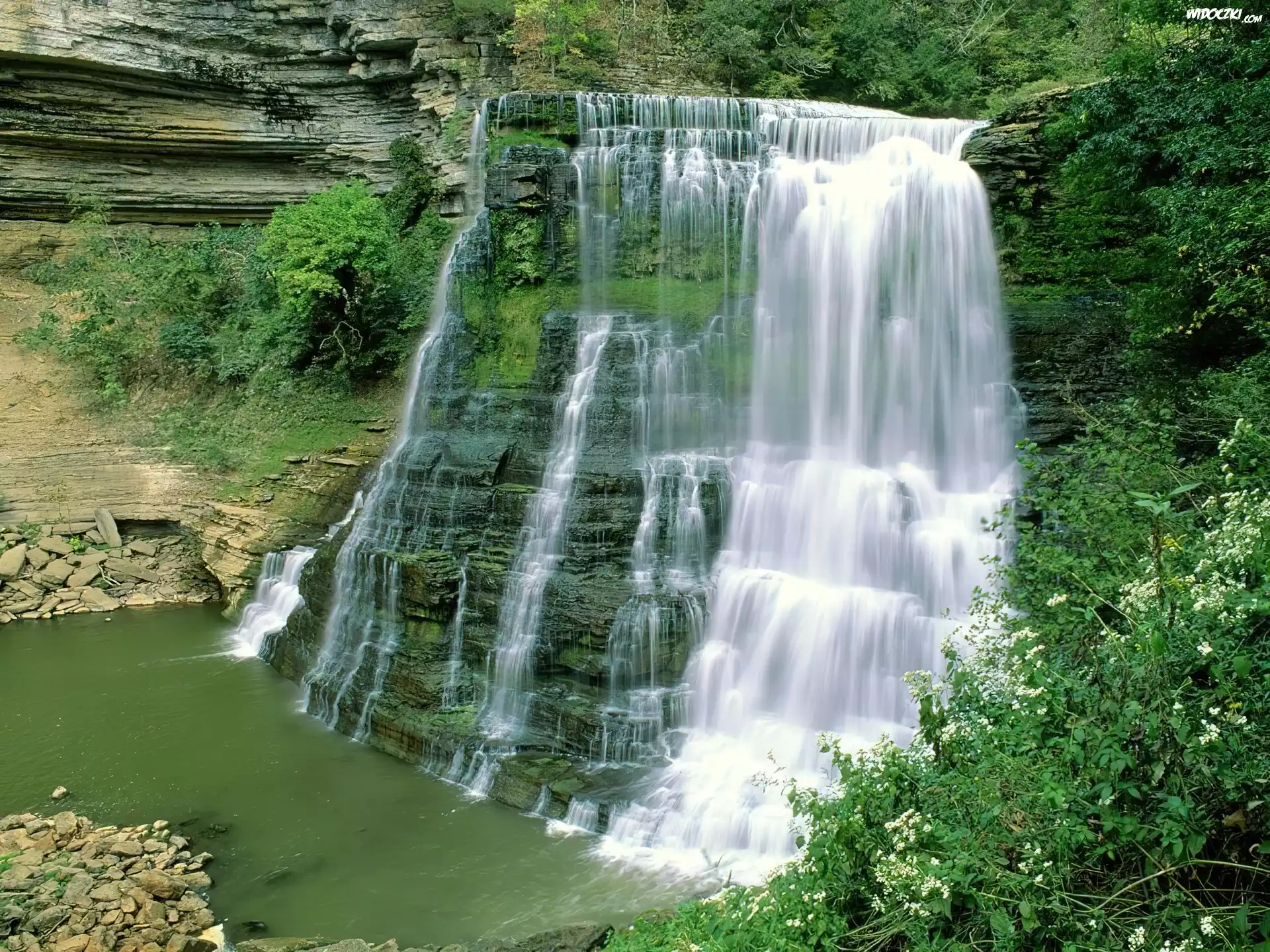 Wodospad Kwiaty Wodospad, Lato Skały, Wodospad Młyn, Nad, Rzeką, Virginia Wodospad Chorwacja, Park, Narodowy, Wodospad Góra, Wodospady, Paprocie Wodospad, Spieniona, Woda Wodospad, kłoda Wodospad Wodospad wysoki Wodospad Wodospad, drzewa Wodospad, łąka
