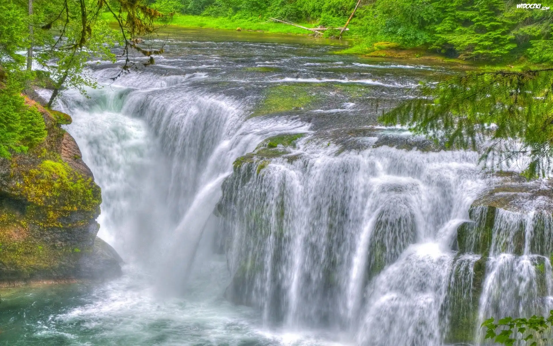 Zdjęcia, Zieleń, Wodospad, Drzewa