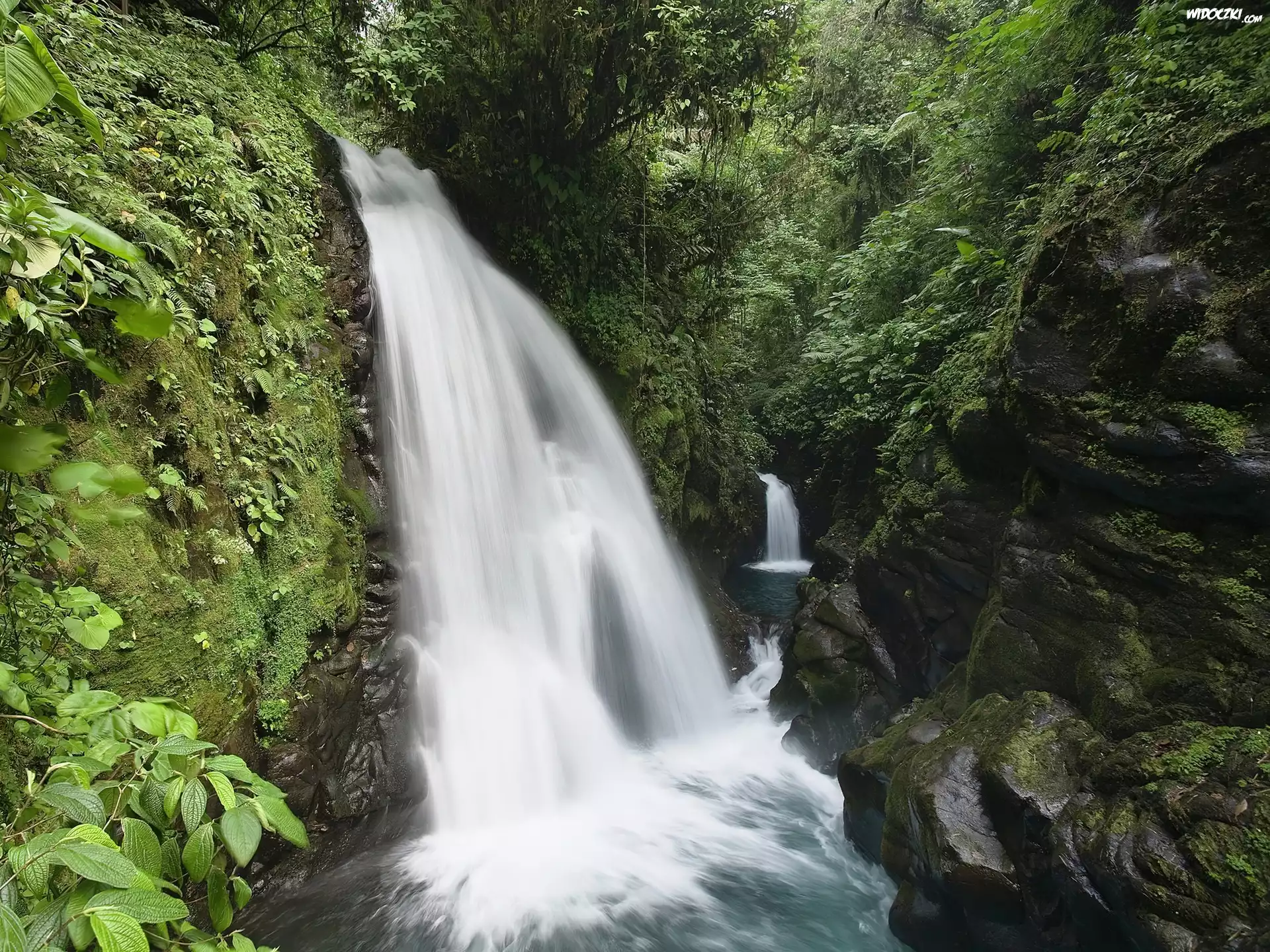Zdjęcia, Wodospad, Skały, Zieleń, Kostaryka