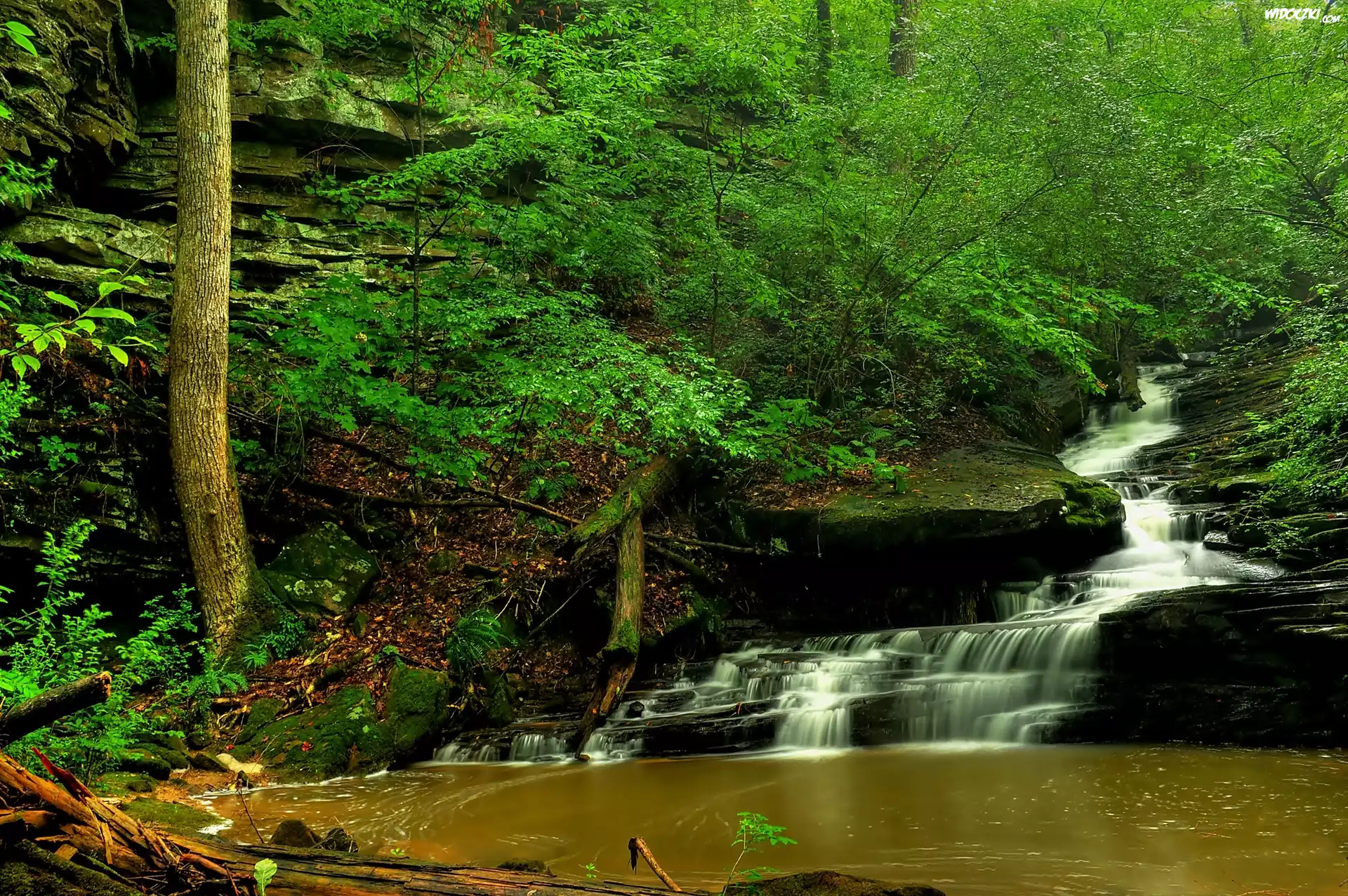 Zdjęcia, Wodospad, Rzeka, Skały, Zielony, Las