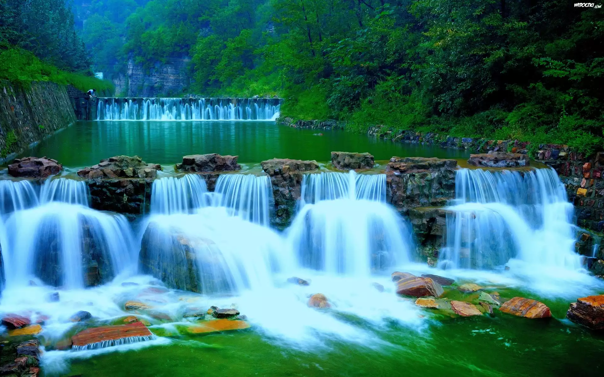 Wodospady, Kamienie, Skały, Las