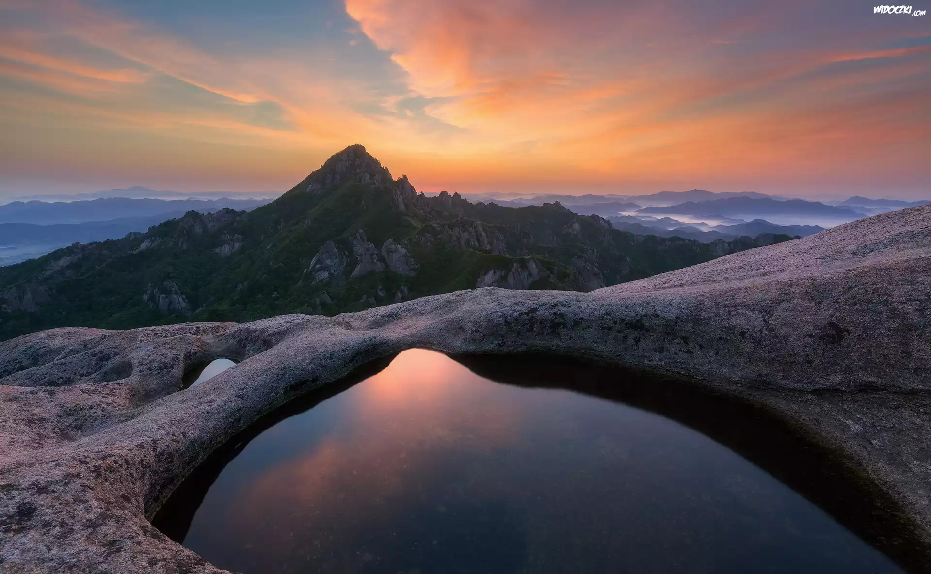 Zdjęcia, Park Narodowy Wolchulsan, Góry, Zachód słońca, Prowincja Jeolla Południowa, Korea Południowa