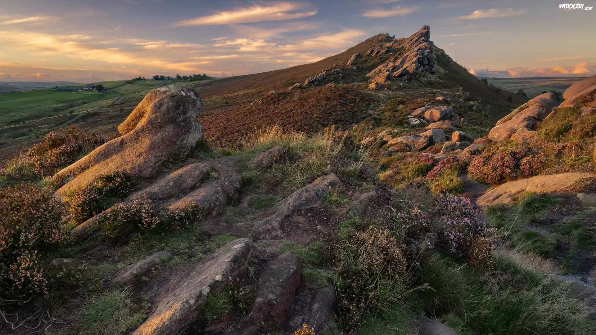 Zdjęcia, Wzgórze, Skały, Rośliny, Wrzos