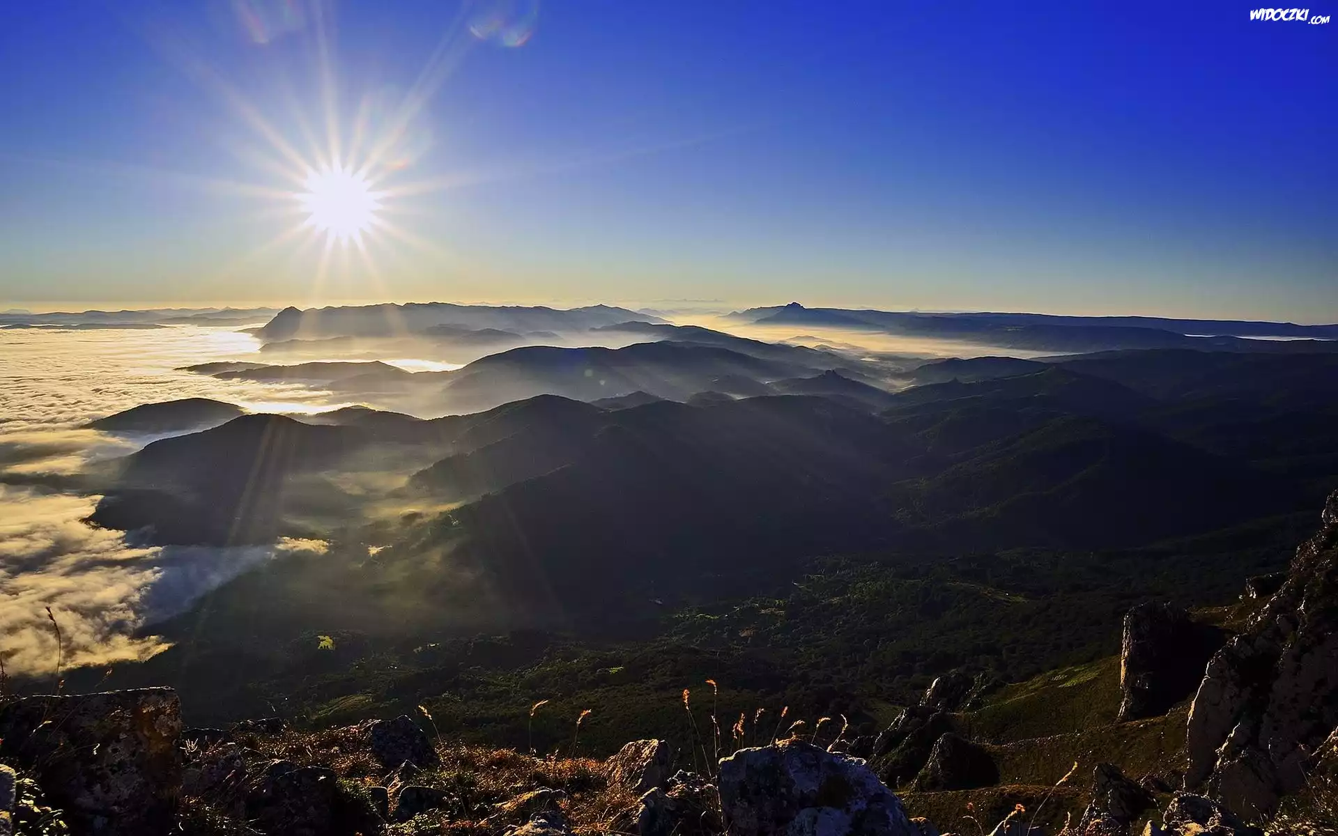 Zdjęcia, Wschód, Słońca, Góry, Chmury, Skały