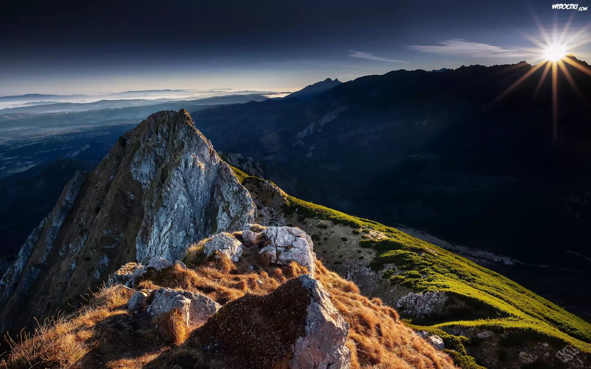 Zdjęcia, Wschód słońca, Góry, Tatry, Giewont, Polska