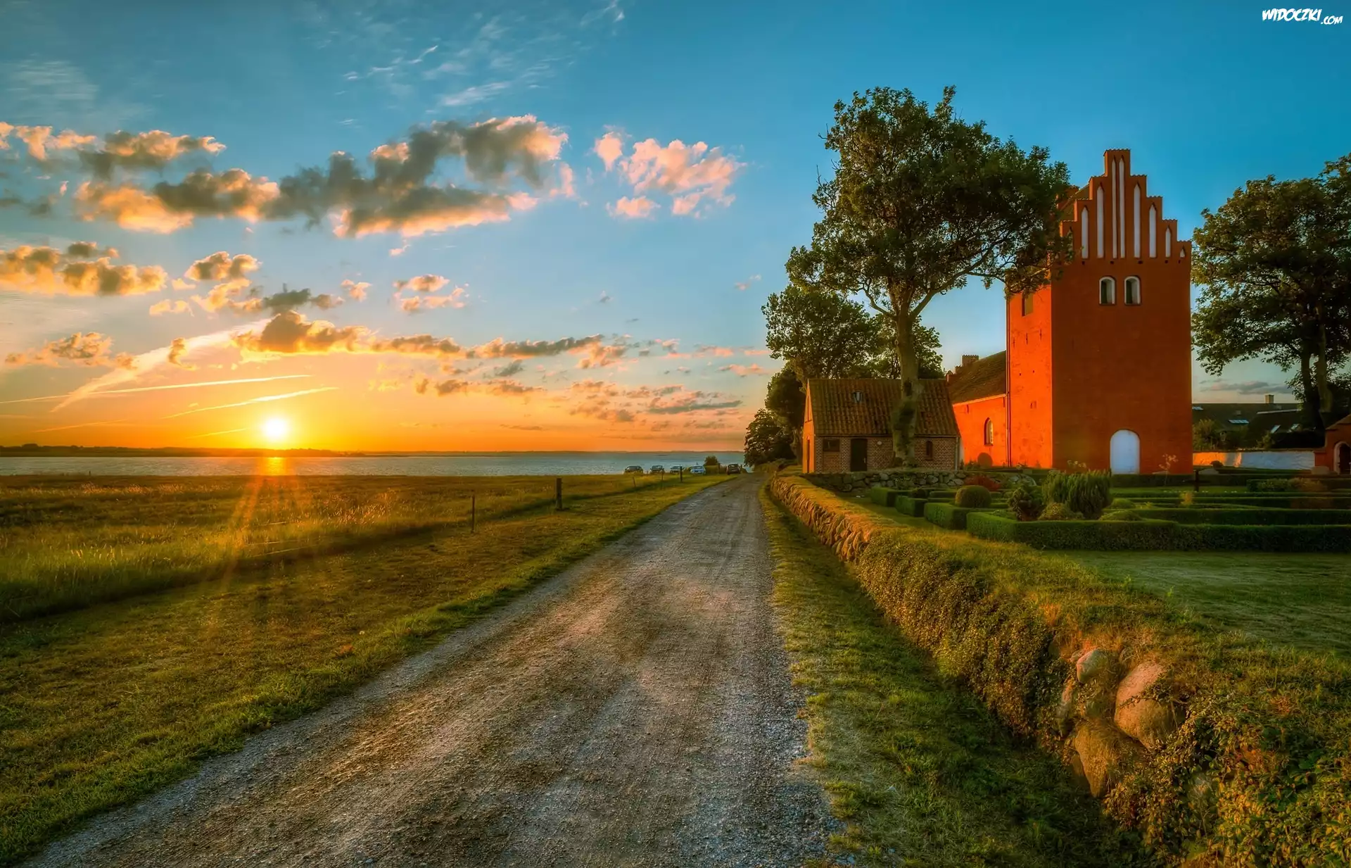 Zdjęcia, Wschód słońca, Droga, Kościół, Niemcy