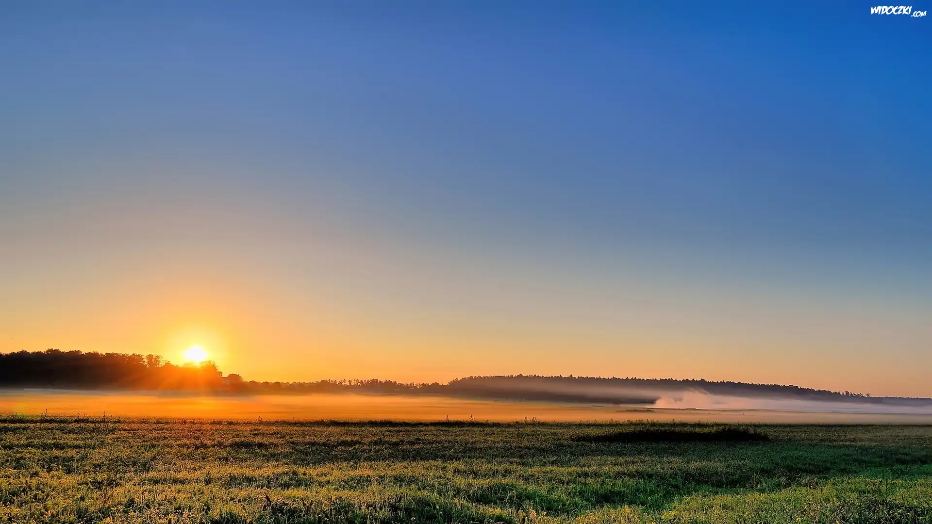 Wschód, Słońca, Mgła, Łąka